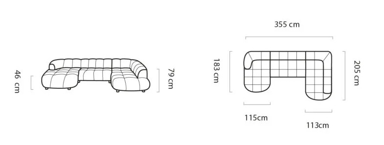 - Tiefe der Ottomane (rechts): 113 cm