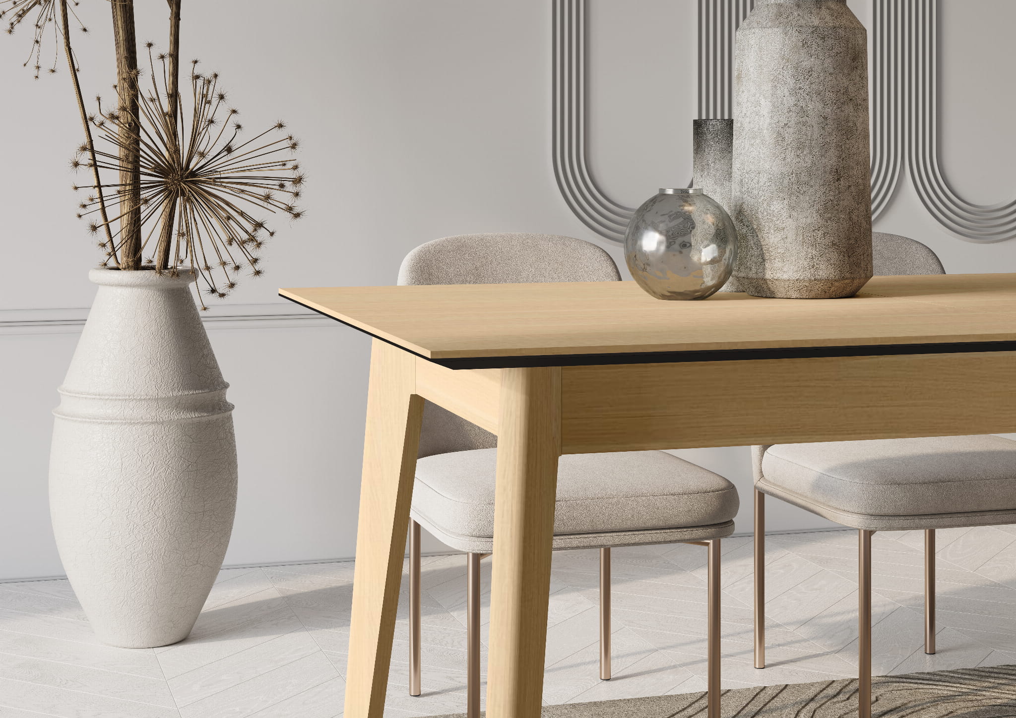 Ausziehbarer Esstisch PLOT – Stilvolle Flexibilität in heller Eiche