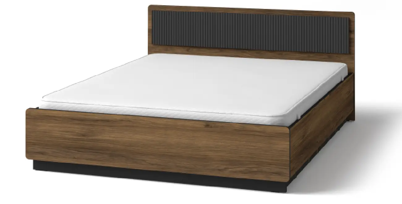 Bett 160x200 cm NERO P13 | mit Lamellen | Nussbaum Warmia & Schwarz | Loft industrial