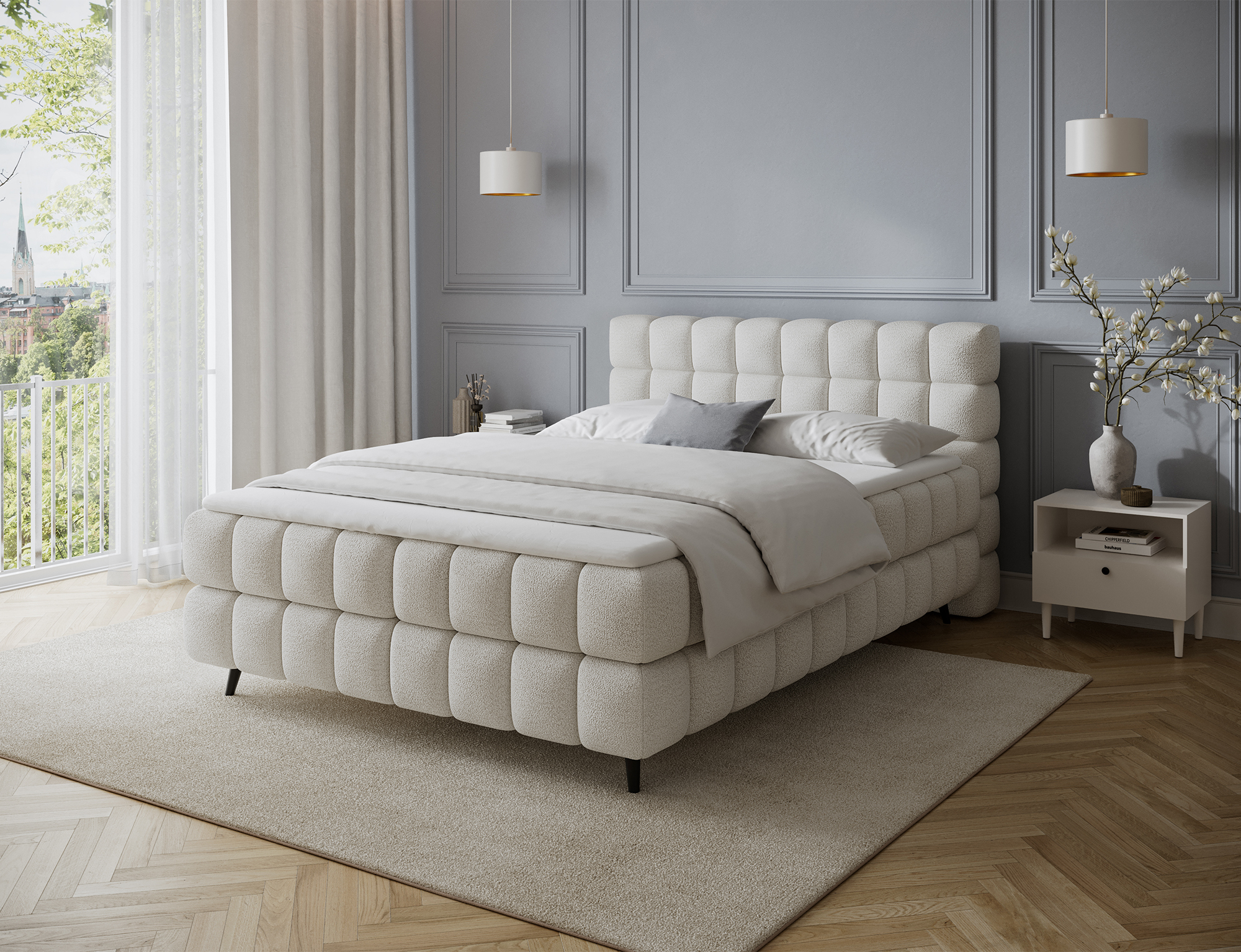 Boxspringbett 140x200 mit Bettkasten MELLOW | Bouclé Teddy | Design Bubble
