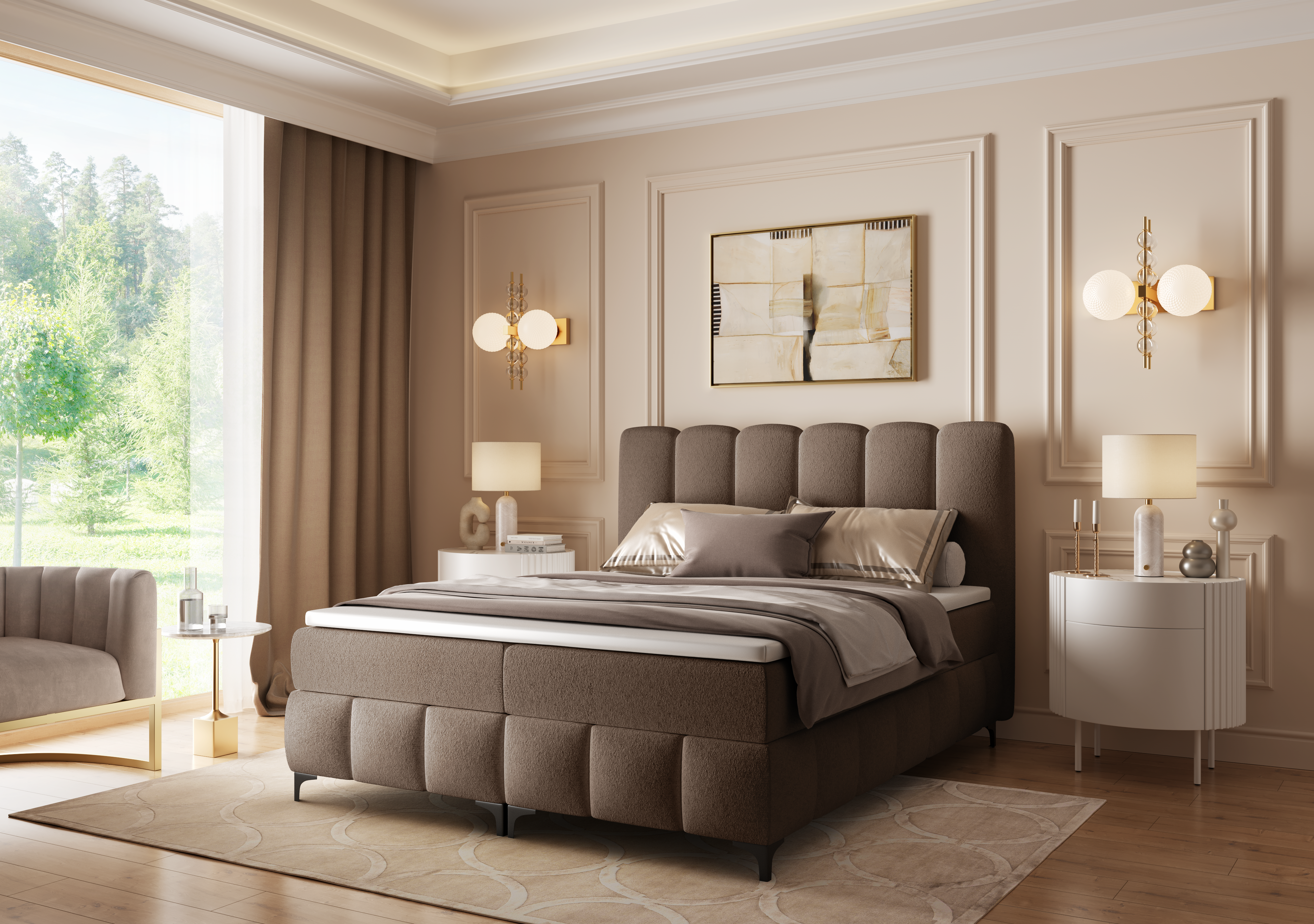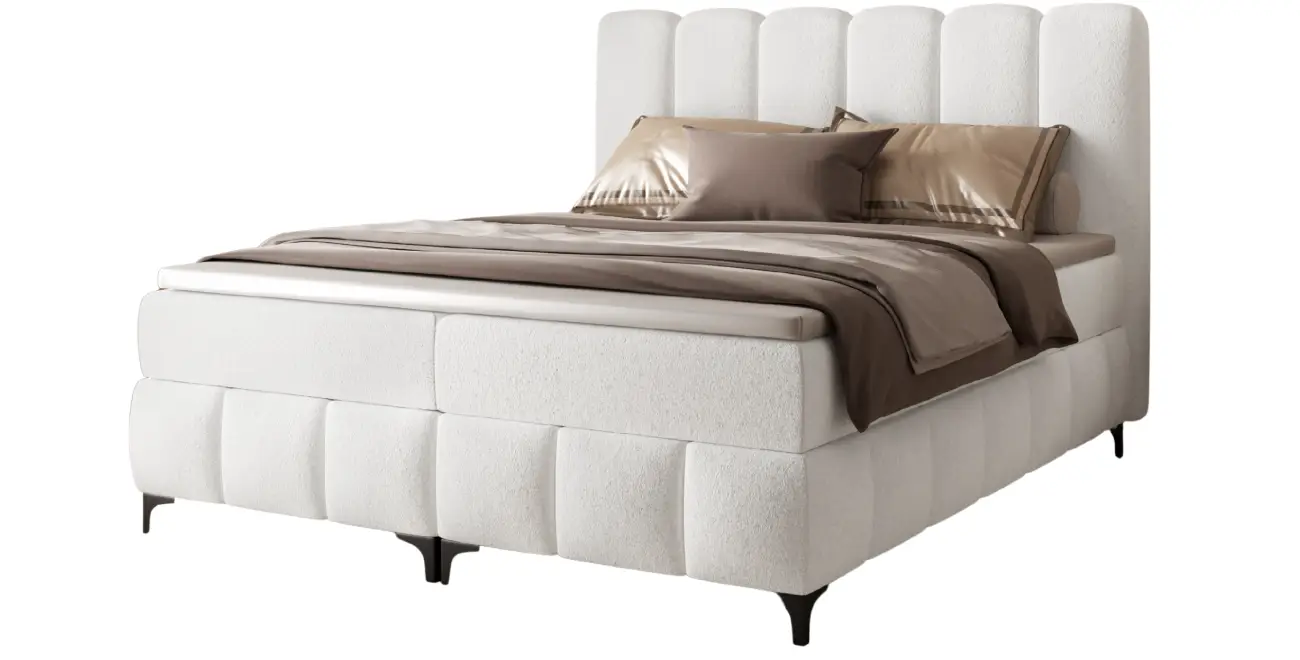 Boxspringbett Monroe – „Wolken“-Design, 2 Bettkästen, Stoff Prime (Bouclé)