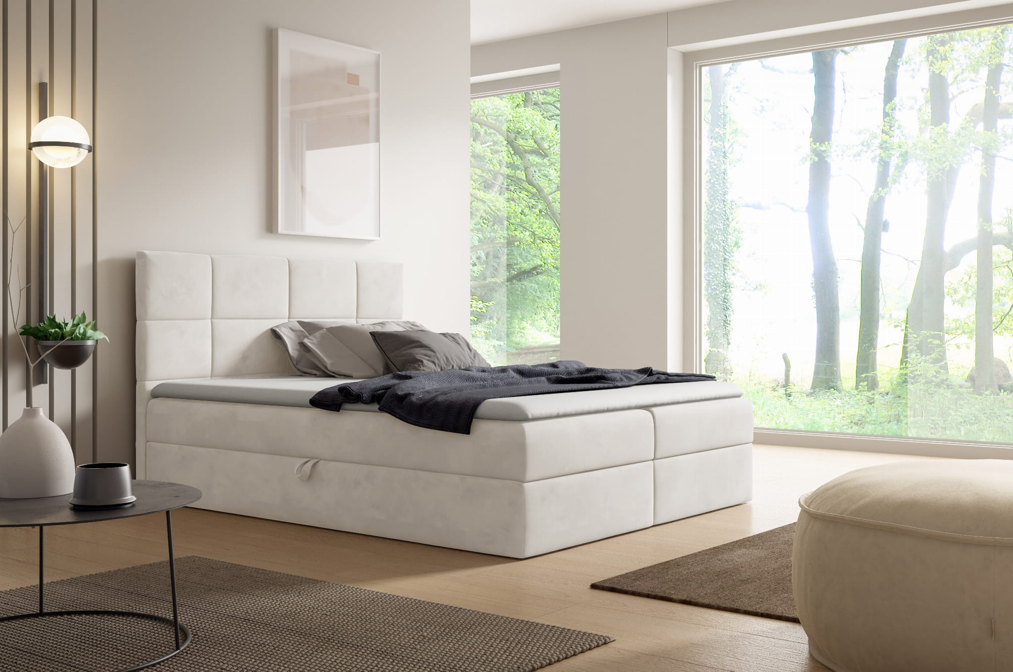- Gepolstertes Kopfteil und gepolsterte Bettkästen
