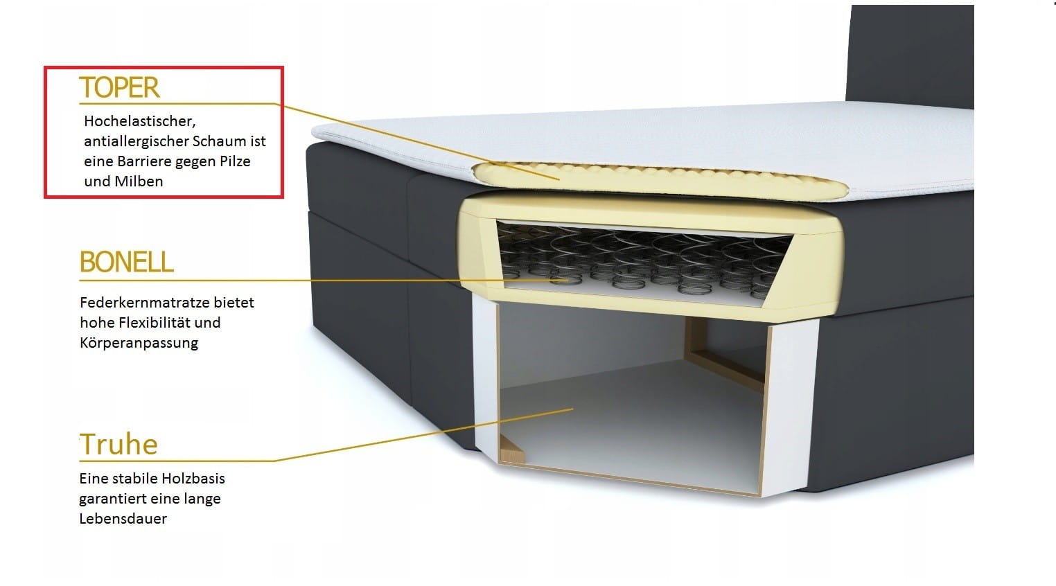 - Hochwertige Bonellfederkernmatratze mit orthopädischen Eigenschaften