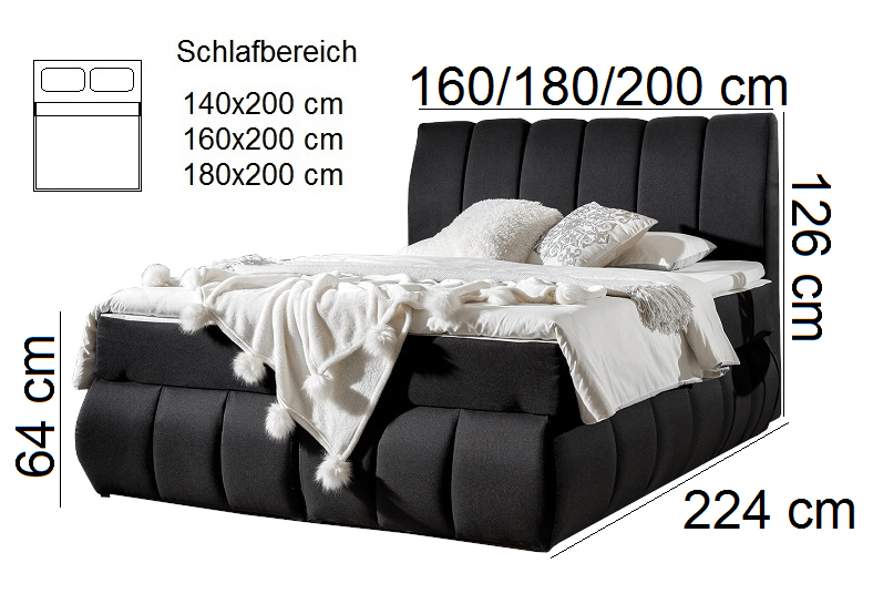 Das Bett ist der Mittelpunkt jedes Schlafzimmers. Wenn Sie ein Schlafzimmer einrichten und ein Bett suchen, das Sie durch sein einzigartiges Design und höchsten Komfort begeistern wird, wählen Sie das Modell Vincenzo. In der Art kontinentaler Betten bietet es einen großzügigen Schlafplatz und eine entsprechend konturierte Füllung, die den Körper beim Schlafen unterstützt. Dadurch wird die Wirbelsäule in Ruhe entlastet und behält die richtige Position bei. Boxspring Vincenzo besticht nicht nur durch den garantierten Komfort, sondern auch durch die Art und Weise, in der es gehalten wird. Sowohl die Boxen um das Bett als auch das Kopfteil sind mit zusätzlichem Schaumstoff aus speziellen Stringern ausgestattet und mit eleganten Längssteppungen verziert. Die ursprüngliche Wirkung wurde auch durch die Polsterung betont. Neben der Tatsache, dass es aus einem weichen, festen Material besteht, das gegen Beschädigungen, Abrieb und Ausbleichen beständig ist, ist es in einer Vielzahl von Farben erhältlich - von klassischen, dezenten Tönen bis hin zu Kontrastfarben wie Senf oder Flaschengrün, und endend mit. Dadurch kann jeder Anhänger eines originellen, modernen Interieurs den endgültigen Effekt leicht an seine eigenen Vorlieben und Farben im Schlafzimmer anpassen.