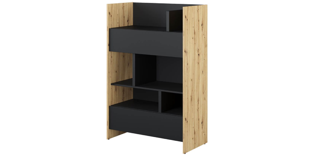 Bücherregal BC-26 in Eiche Artisan / Schwarz – Das Loft-Regal für Ihr horizontales Schrankbett