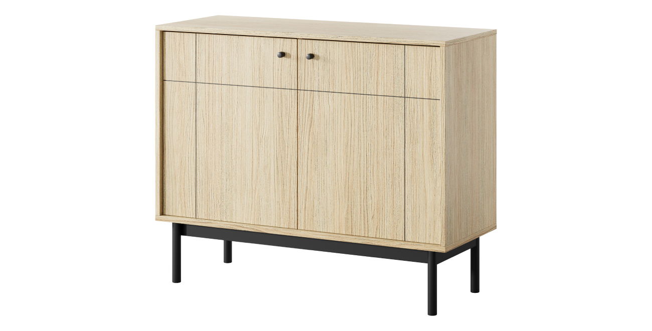 - Smarter Stauraum: Hinter den zwei Türen verbirgt sich geräumiger Platz für Bücher, Geschirr oder Wäsche. Eine zusätzlich integrierte Schublade bietet den perfekten Aufbewahrungsort für kleinere Accessoires und Schlüssel.