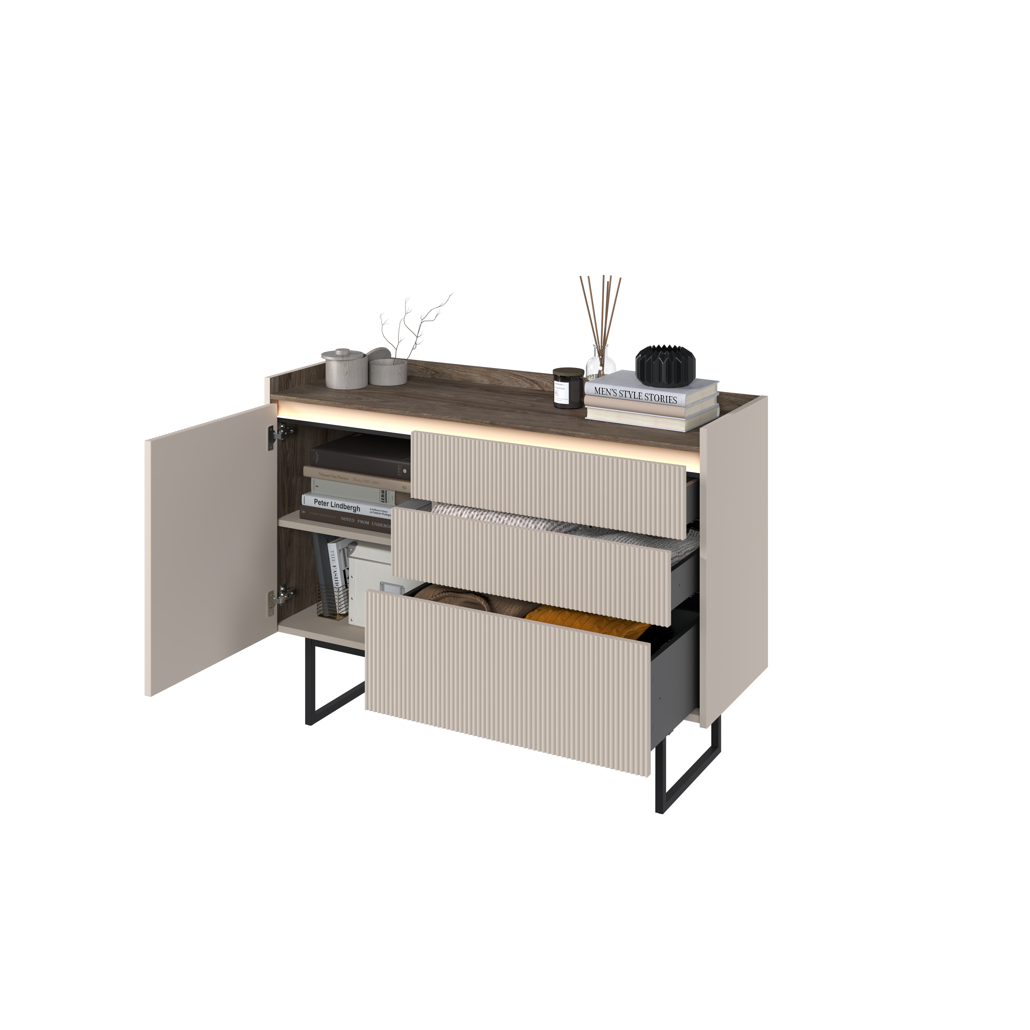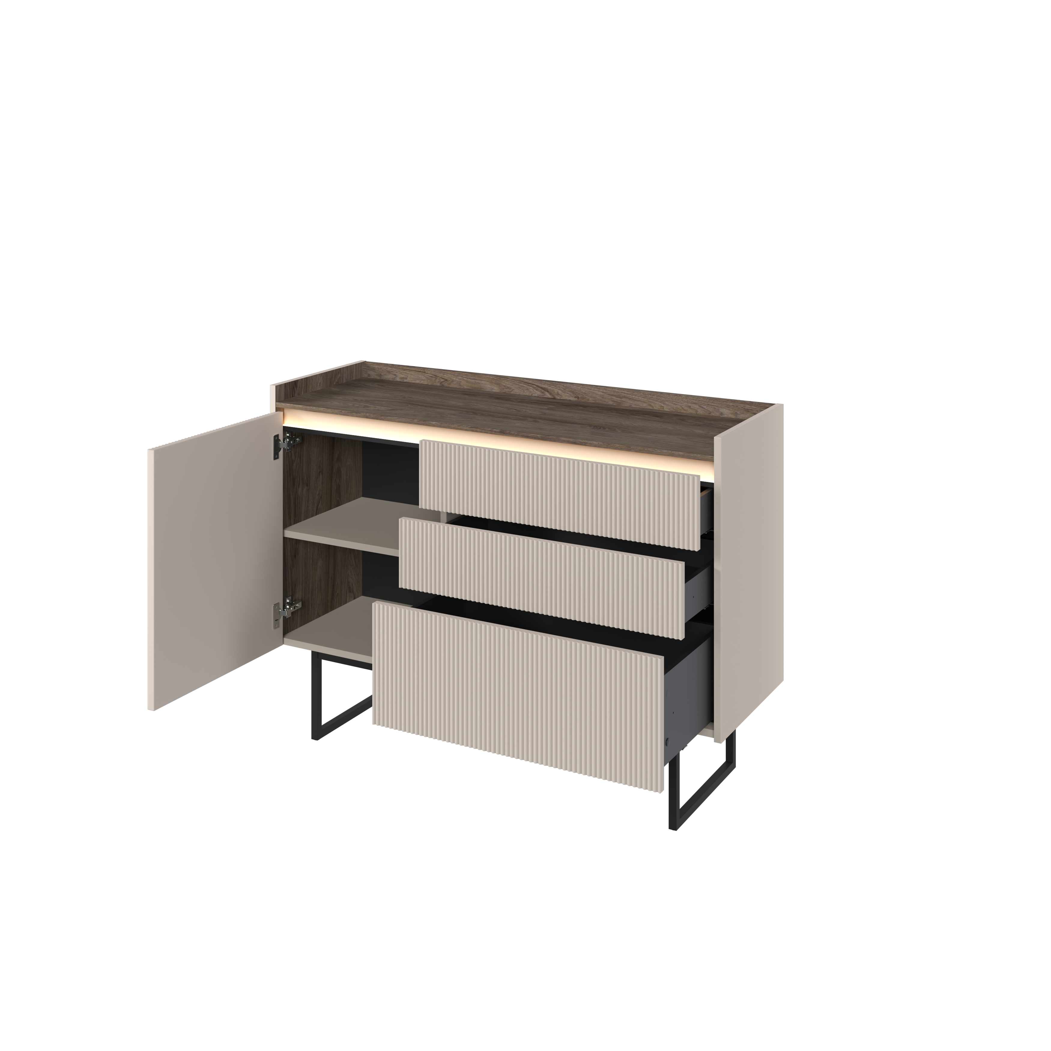 Design Kombikommode LAGO 118 cm Sideboard Sandbeige Eiche LED