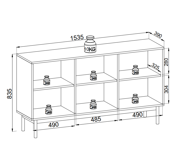 - Smarter Stauraum: Hinter den drei Türen verbirgt sich großzügiger Platz für Geschirr, Ordner oder Wäsche. Eine zusätzlich integrierte Schublade bietet perfekten Stauraum für kleinere Accessoires und Besteck.