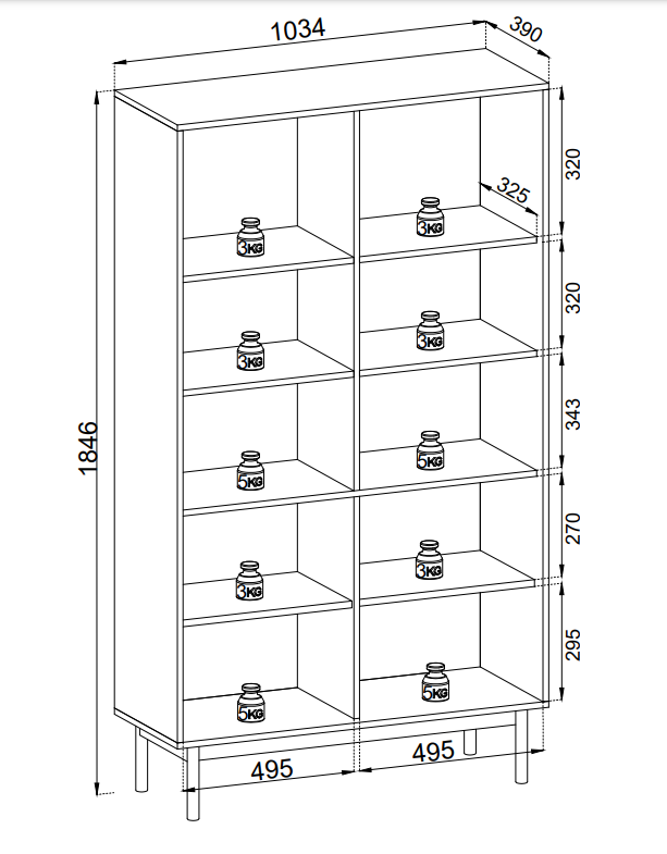 - Material Korpus: Laminierte Möbelplatte (16 mm)