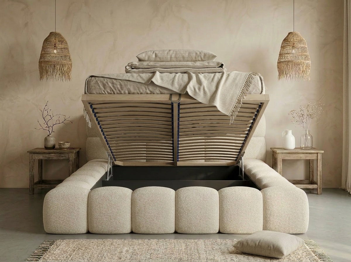 - Upgrade auf Metallrahmen & Gaslift: Wollen Sie den Bettkasten mühelos öffnen? Wählen Sie die Variante mit einem Metallrahmen und starken Gasdruckdämpfern.