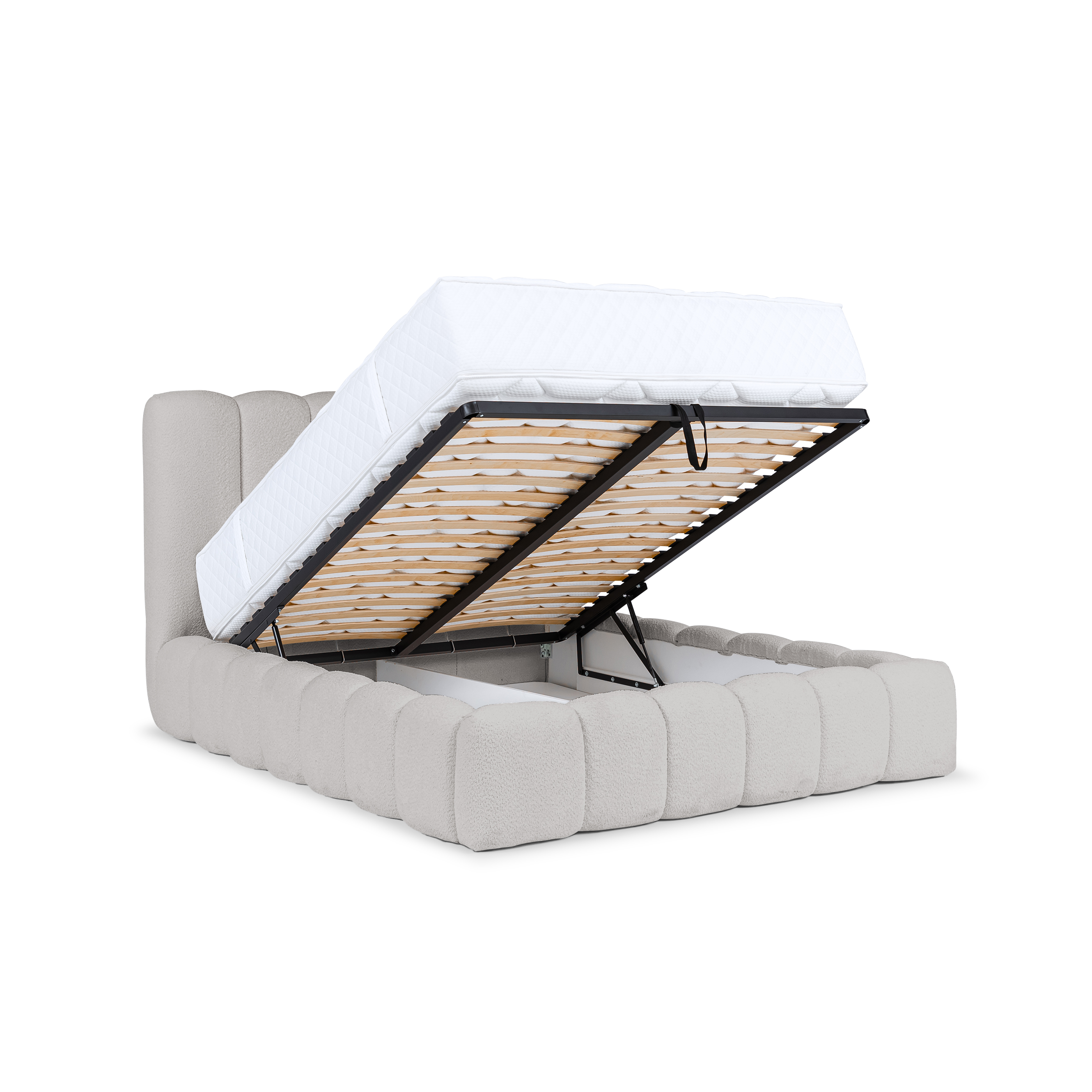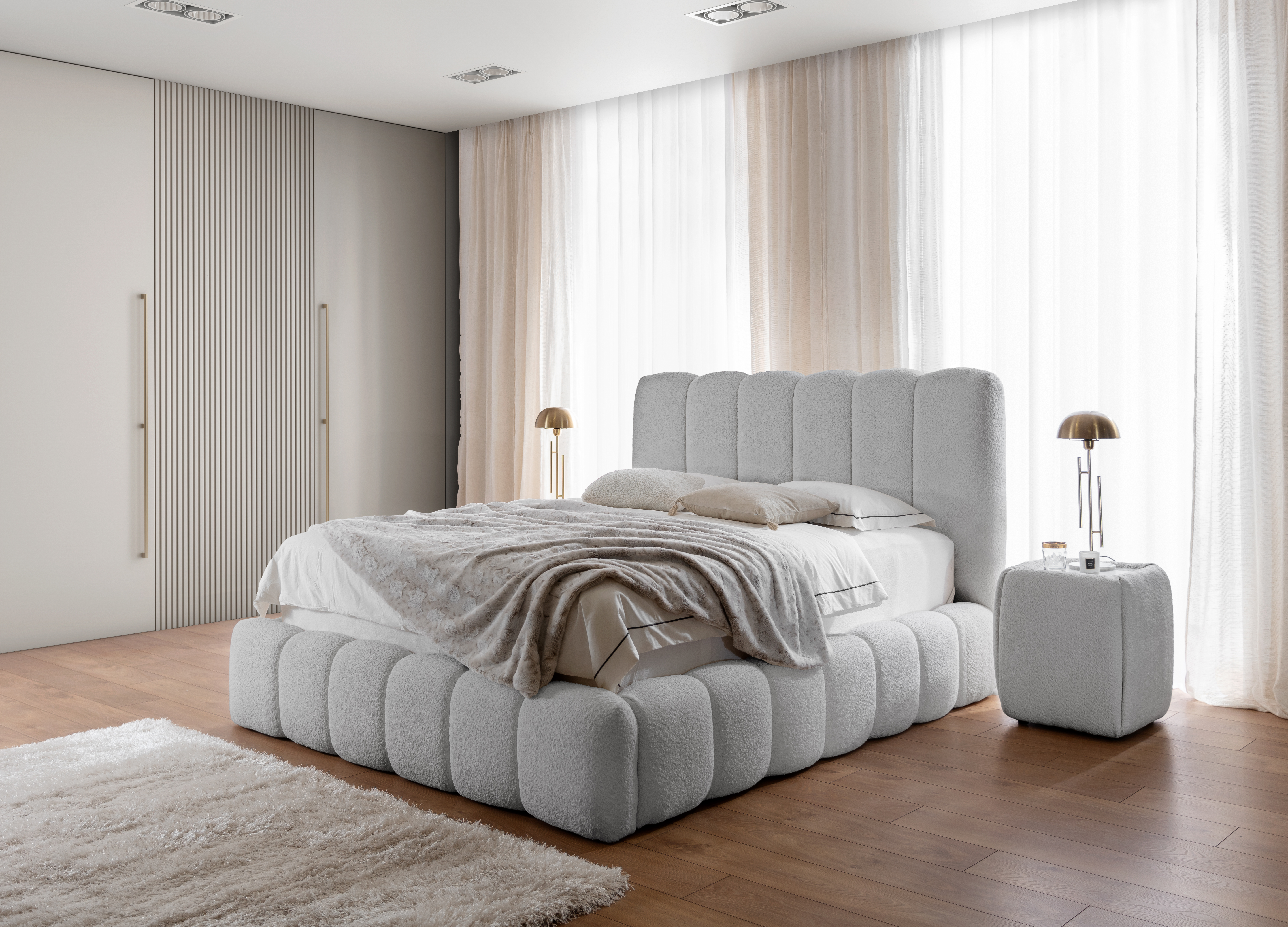 Designer Polsterbett Cande Bouclé 160x200 mit Stauraum