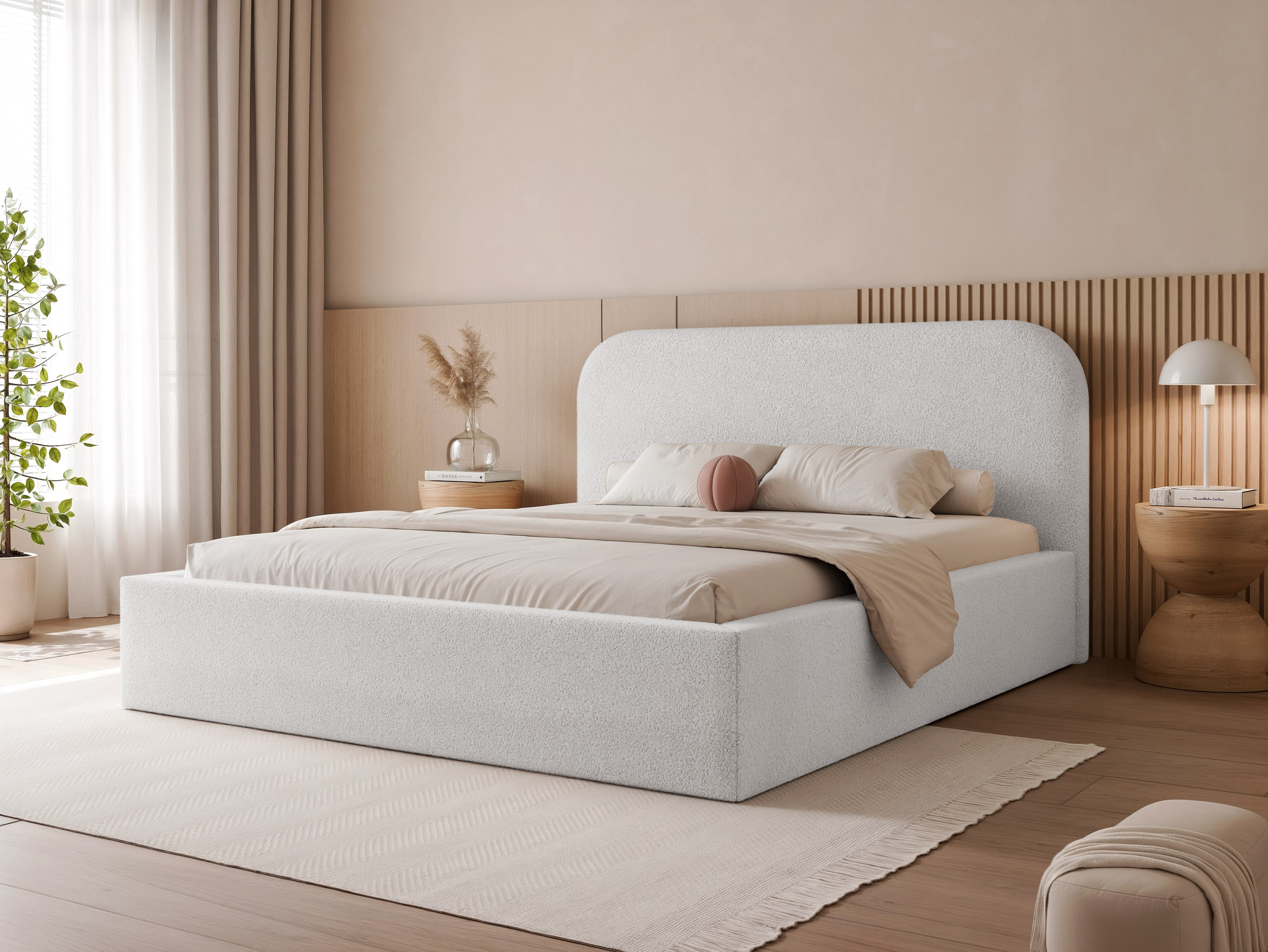 - Organische Formsprache: Die harmonisch abgerundeten Kanten sorgen nicht nur für eine fließende, luxuriöse Optik, sondern reduzieren auch effektiv die Stoßgefahr im Schlafzimmer.