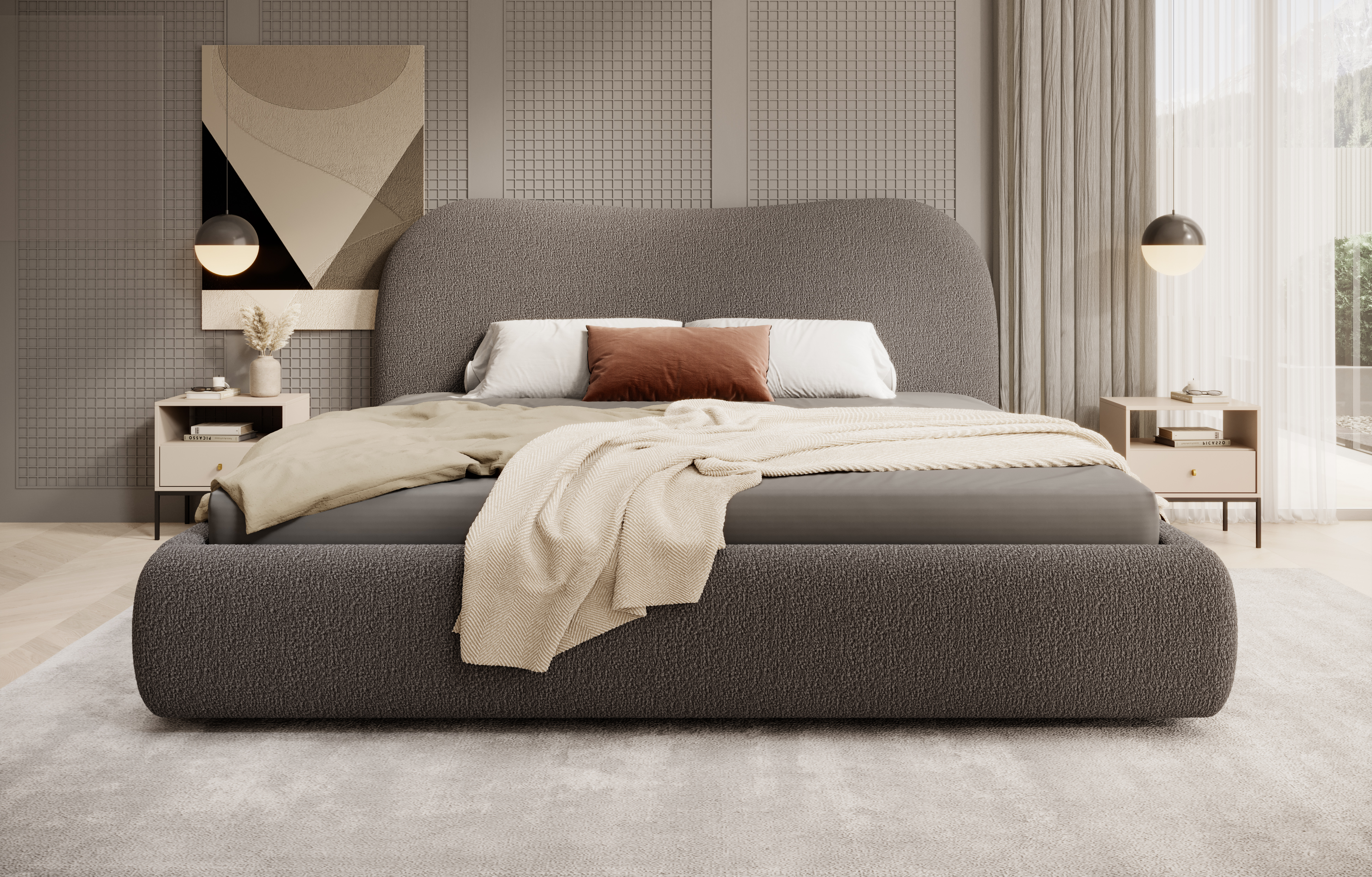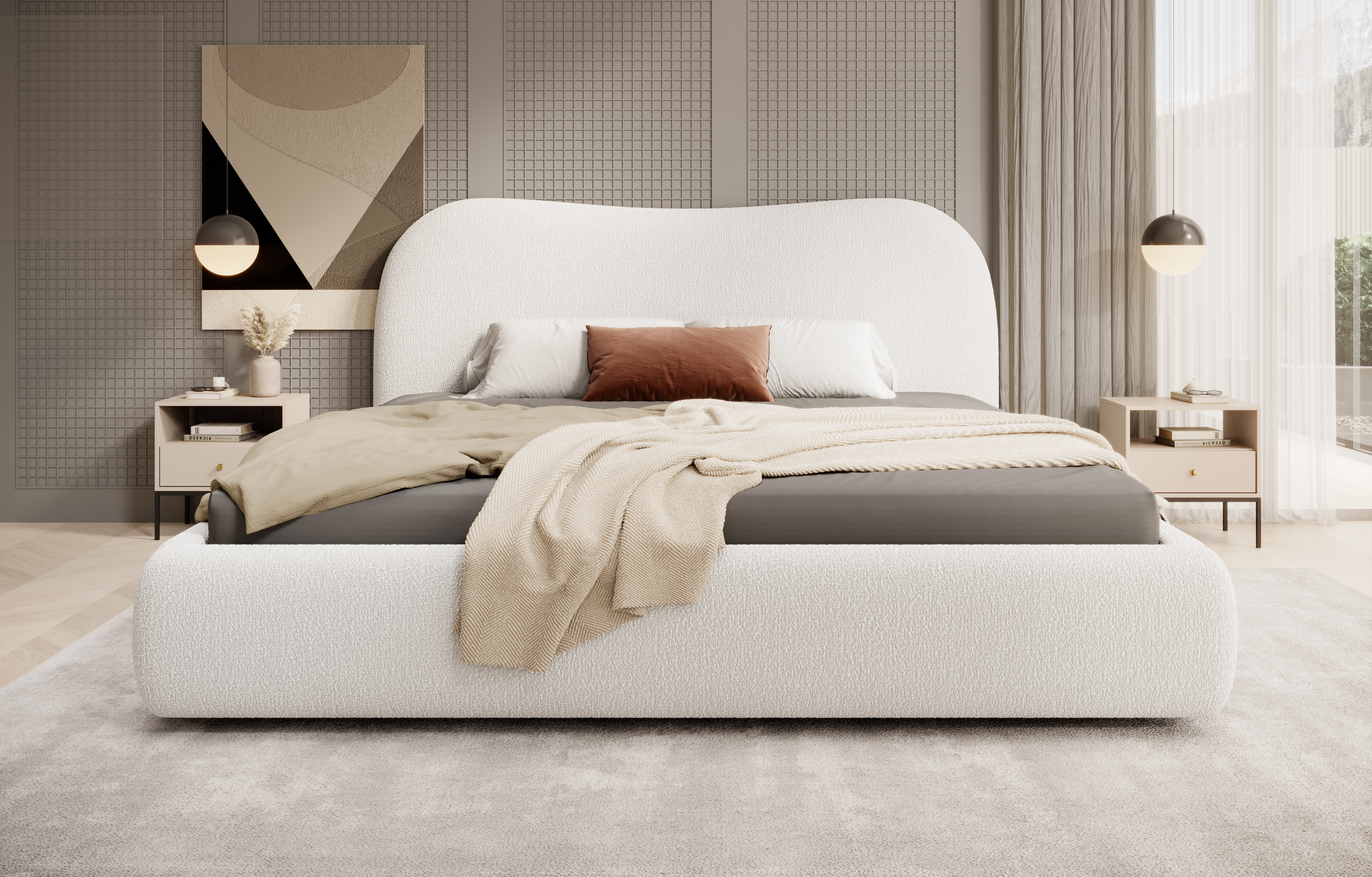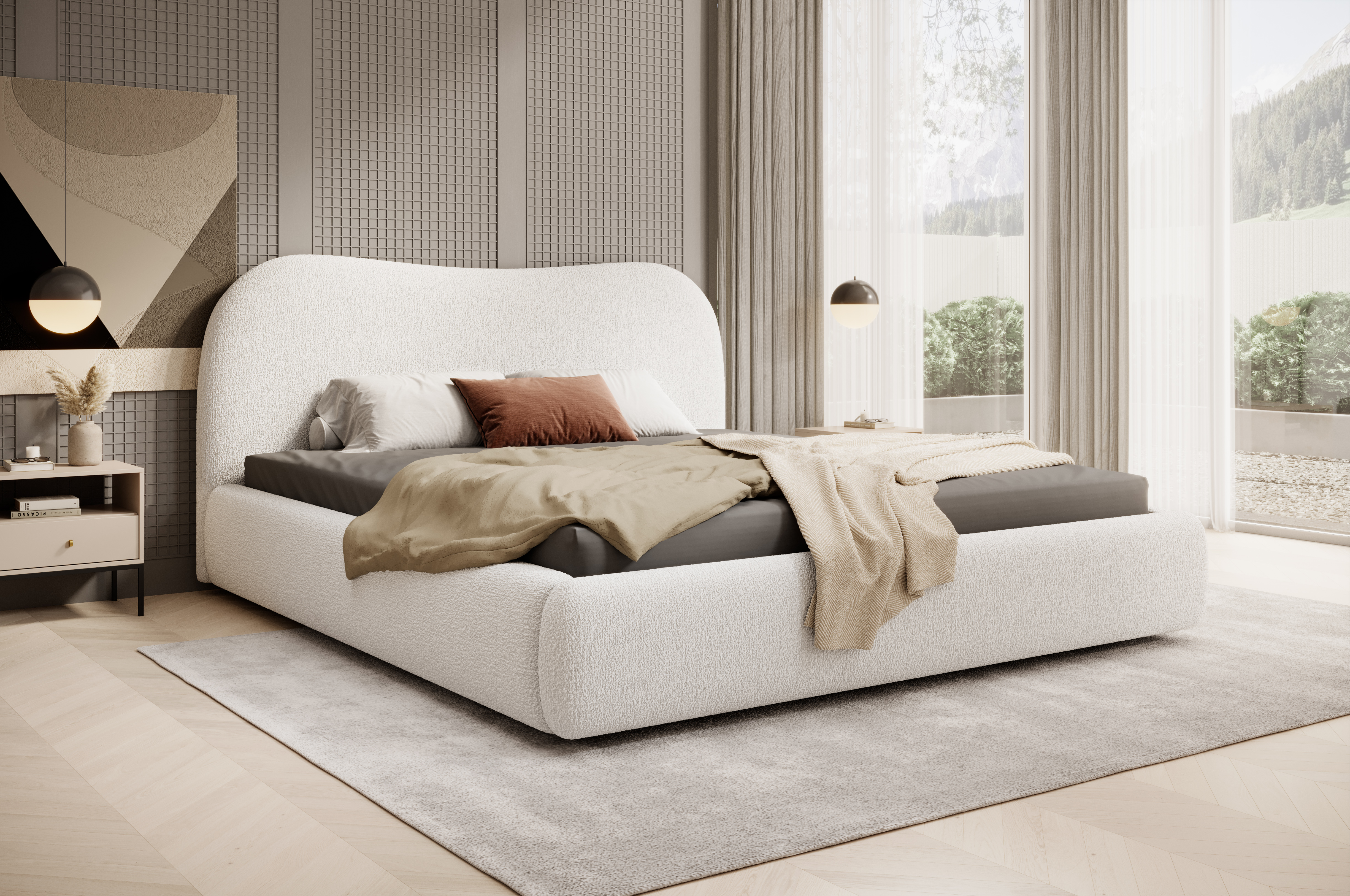 Polsterbett POLENE 140x200 cm – Modernes Cloud-Design & kuscheliger Bouclé-Stoff