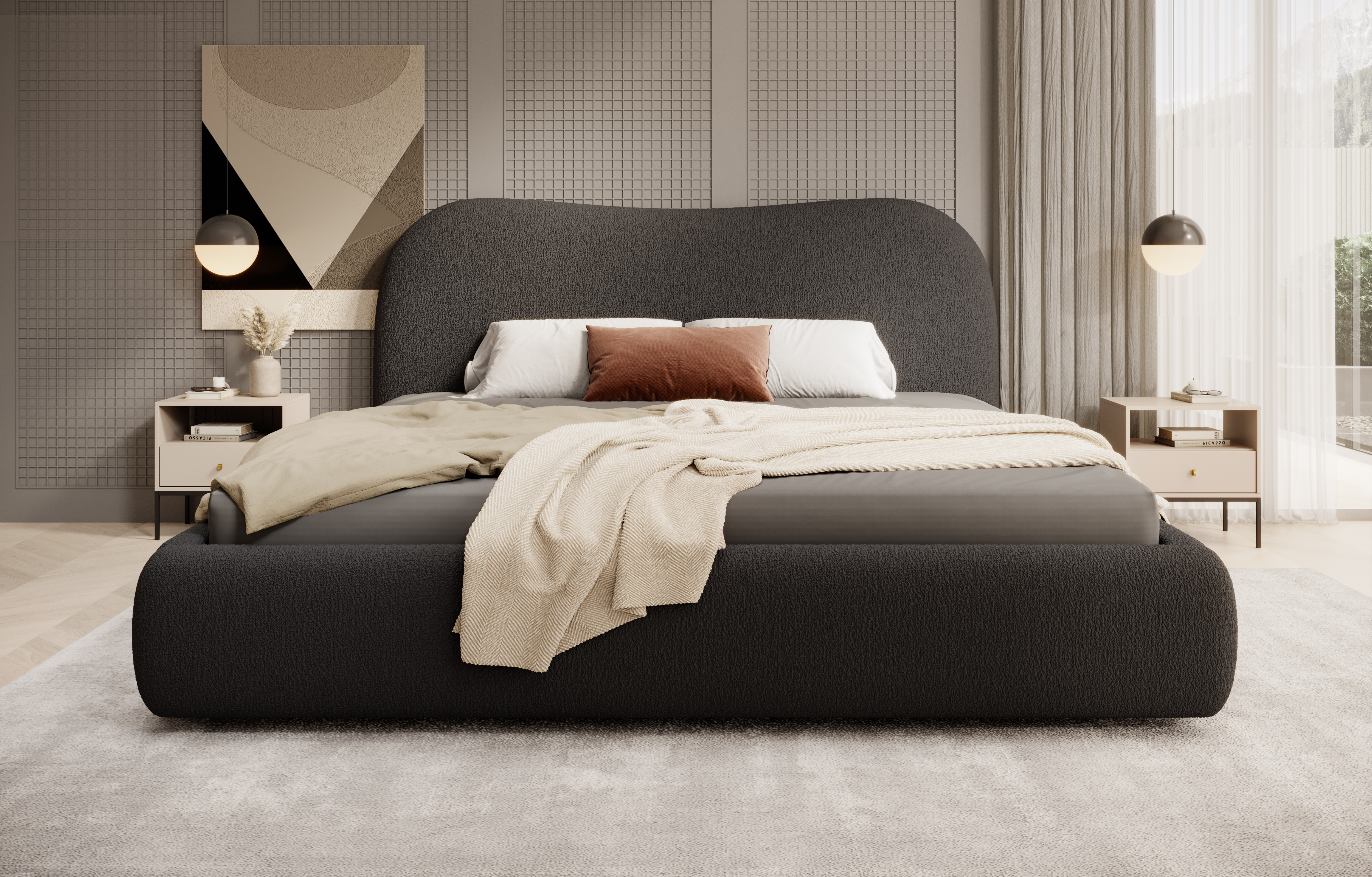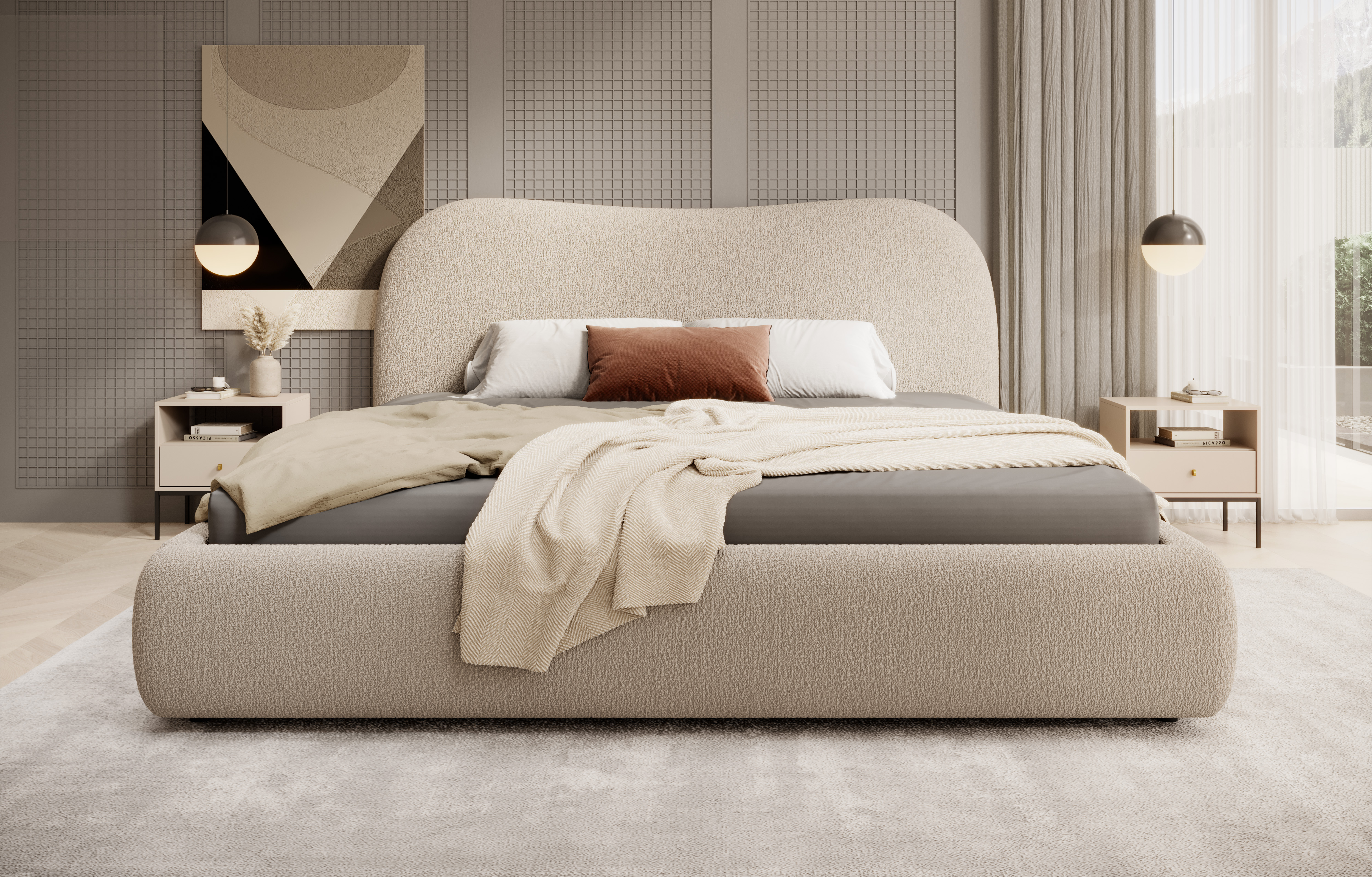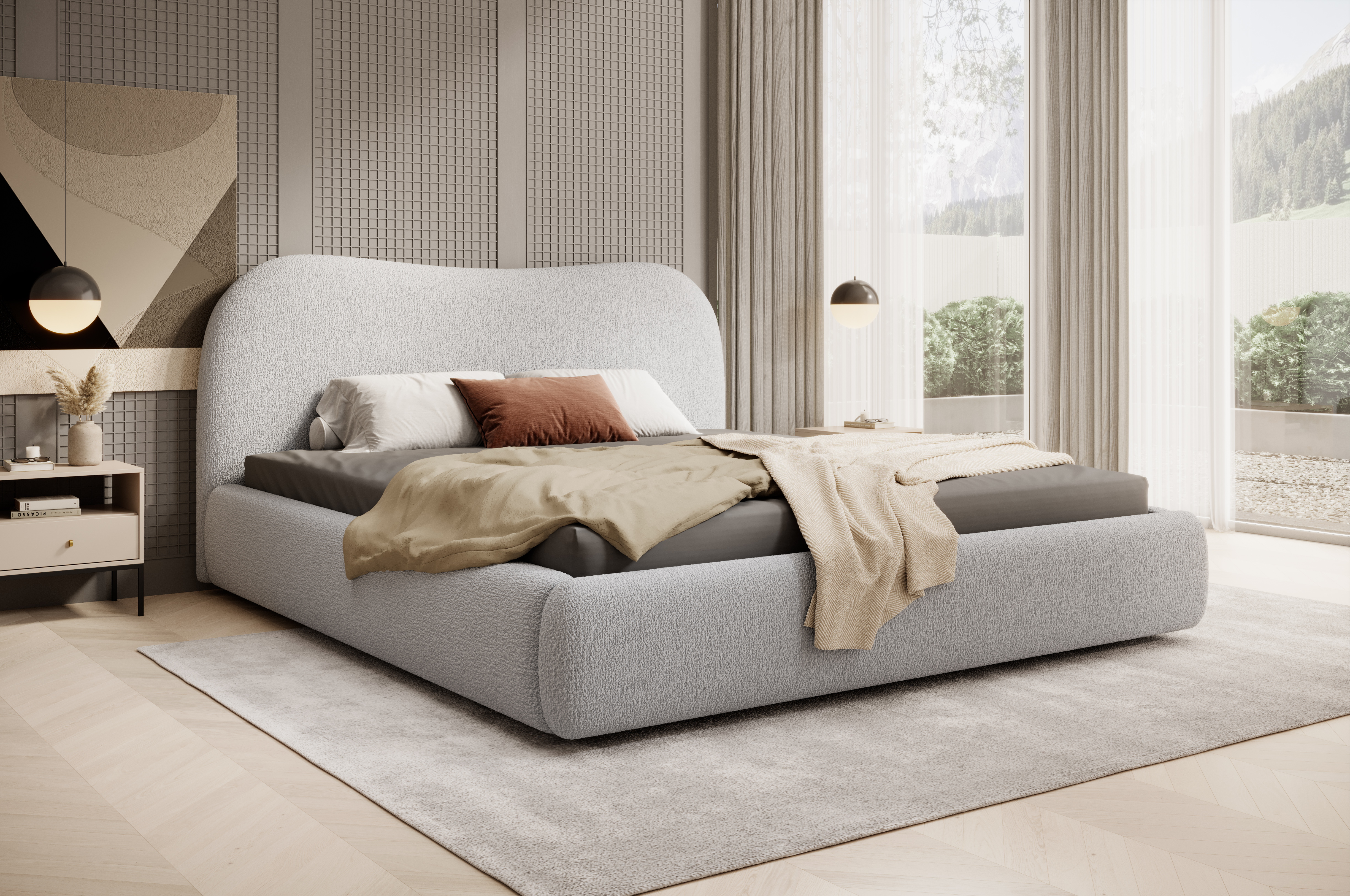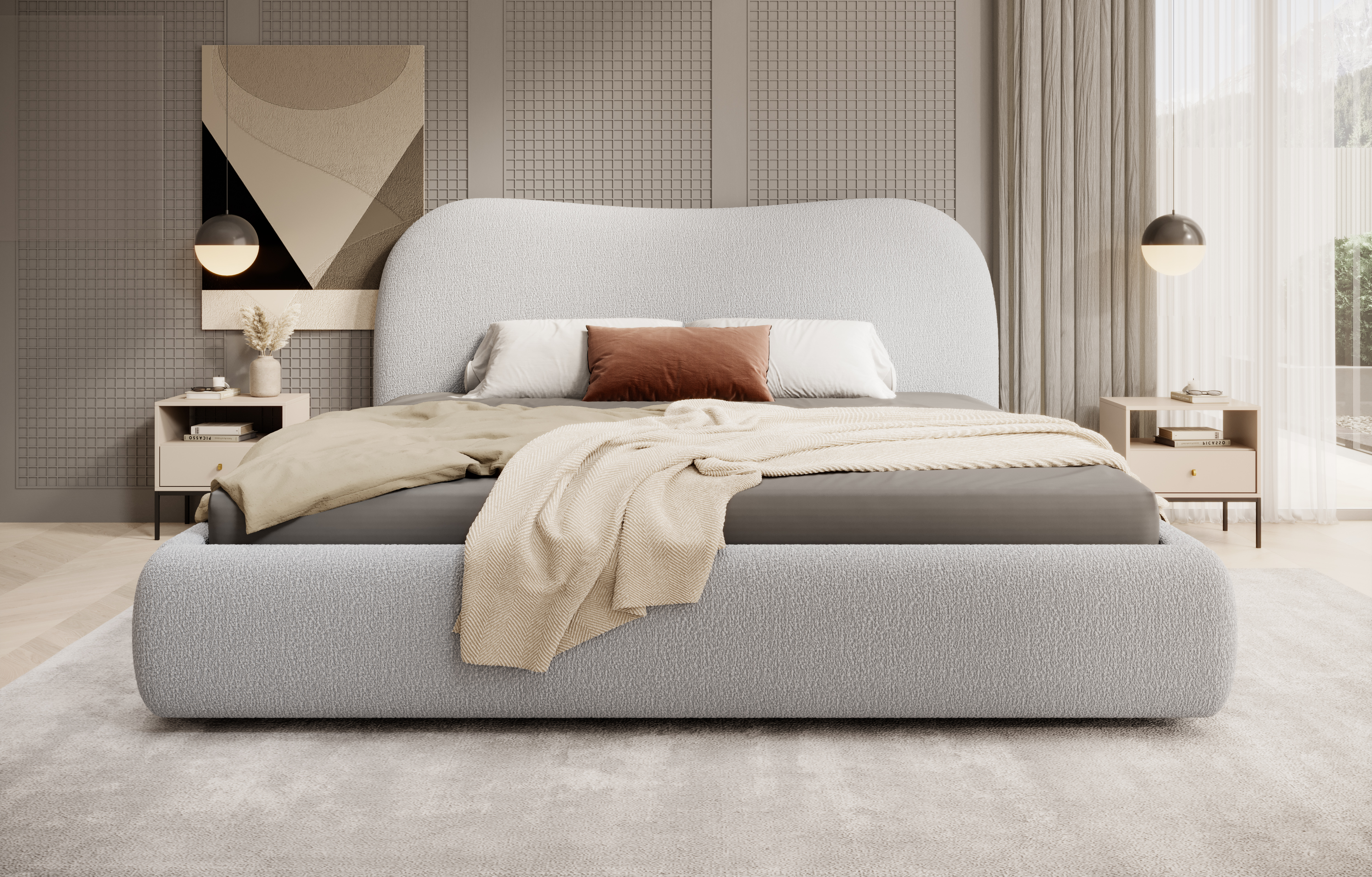 Polsterbett POLENE 140x200 cm – Modernes Cloud-Design & kuscheliger Bouclé-Stoff