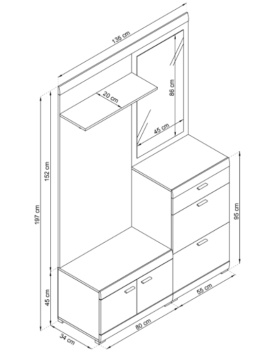 Der Kleiderschrank Stella 135cm ist die perfekte Kombination aus Funktionalität und Eleganz. Er wurde mit Blick auf die anspruchsvollsten Benutzer entworfen und bietet einen geräumigen und praktischen Platz zum Aufbewahren von Kleidung, Schuhen und anderen Accessoires. Das moderne Design und die hochwertige Verarbeitung machen diesen Schrank zu einer Zierde für jedes Schlafzimmer oder jeden Flur.
