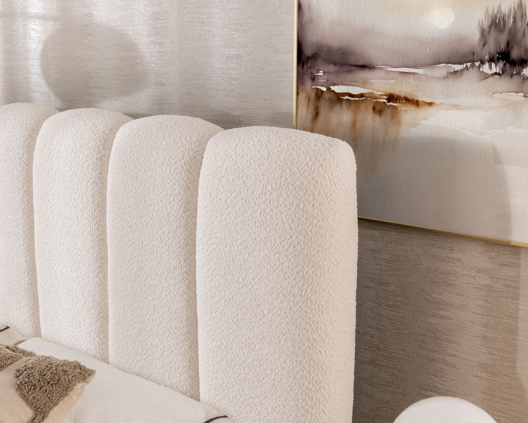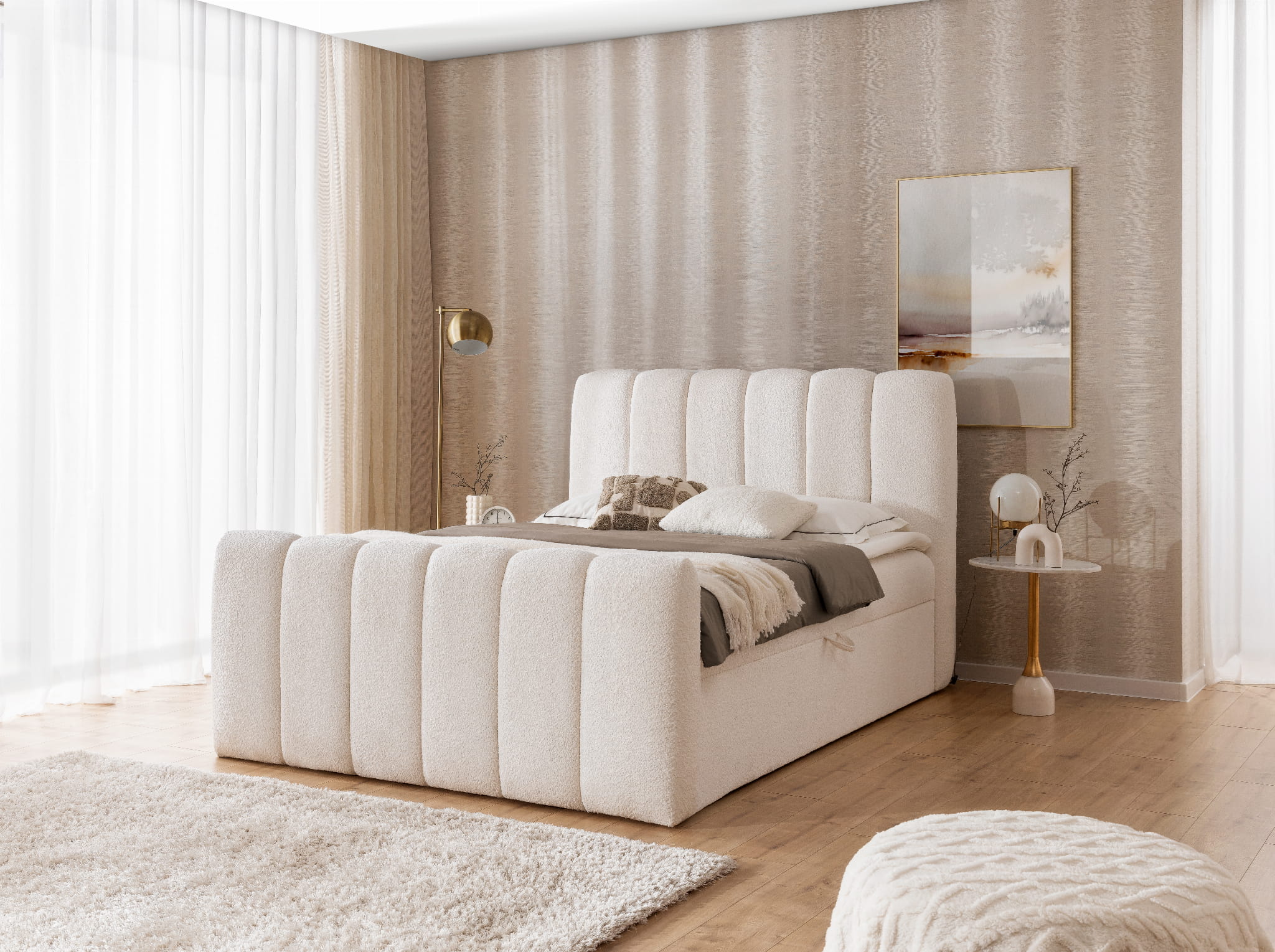 Verwandeln Sie Ihr Schlafzimmer in eine stilvolle Wohlfühloase! Das Boxspringbett CHLOE ist die perfekte Kombination aus modernem Design, höchster Bequemlichkeit und intelligenter Funktionalität. Ausgestattet mit einer hochwertigen Taschenfederkernmatratze und einem kuscheligen Topper, passt es sich der Körperform optimal an und sorgt für einen gesunden, erholsamen Schlaf. Das absolute optische Highlight ist der haptisch faszinierende Bouclé-Stoff sowie das elegant gesteppte Kopfteil, das zum gemütlichen Anlehnen beim Lesen oder Fernsehen einlädt.