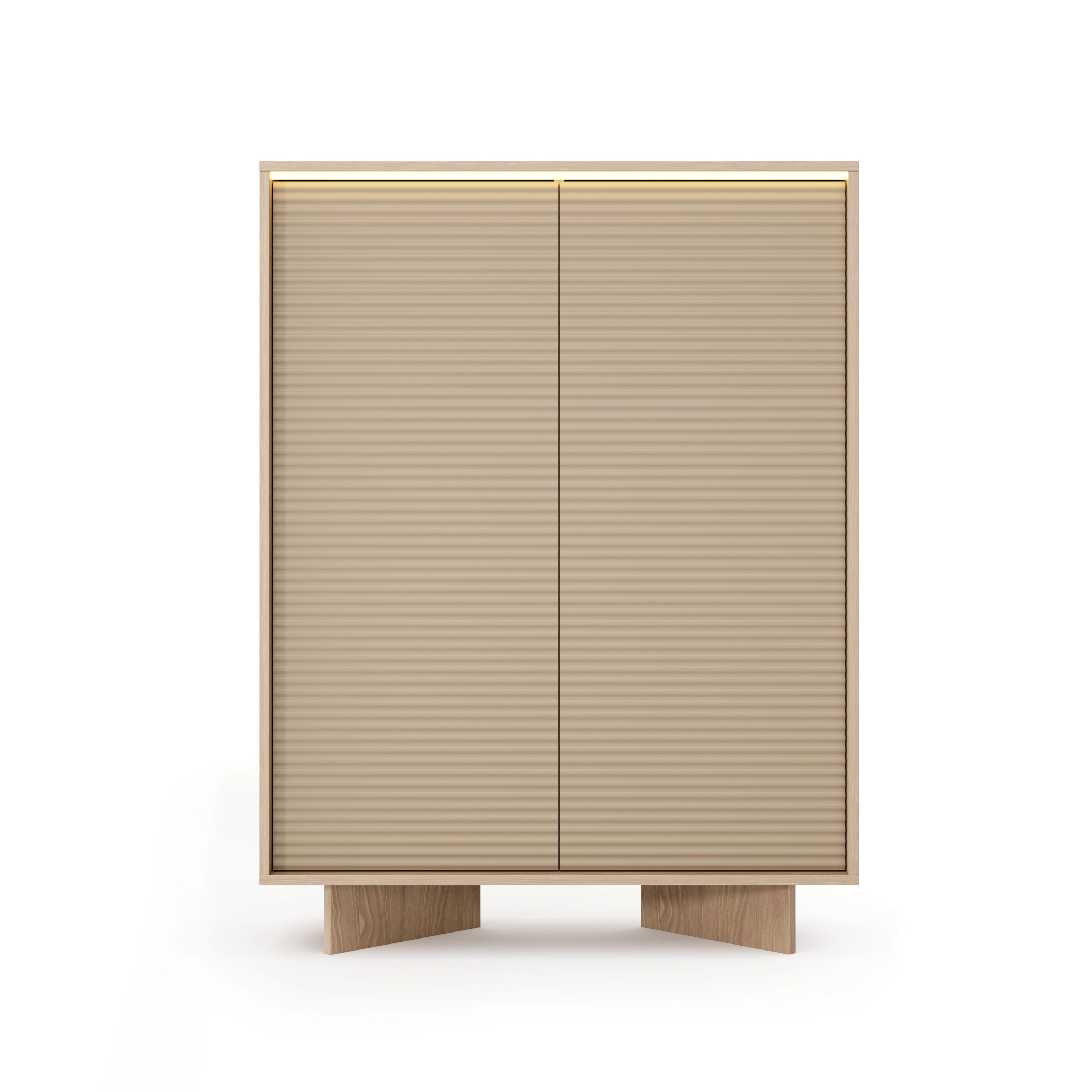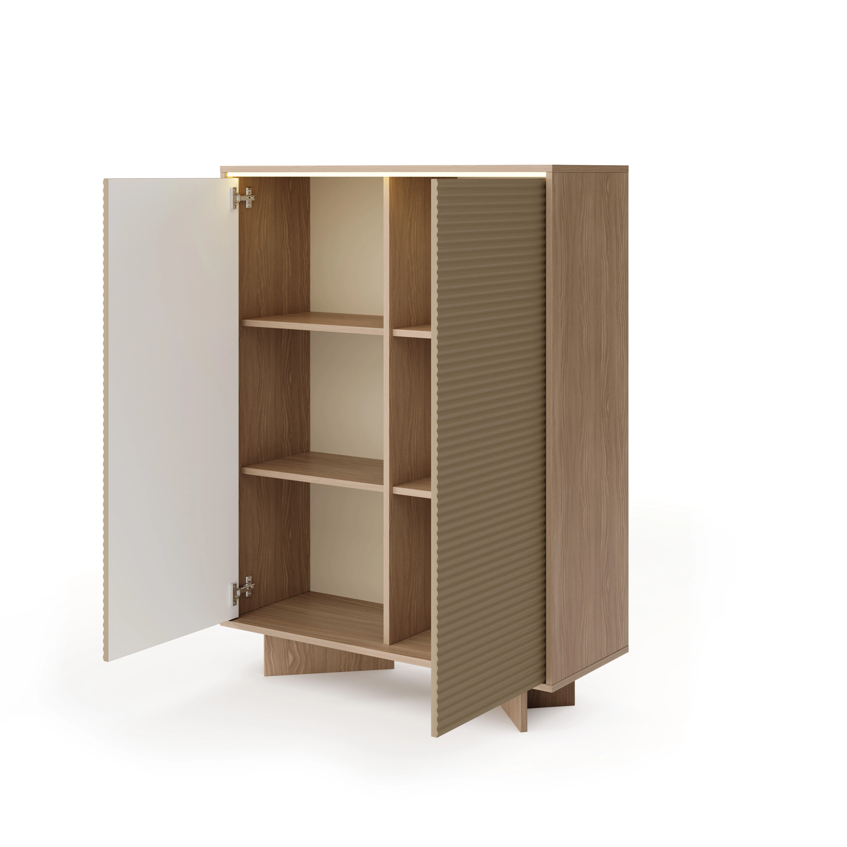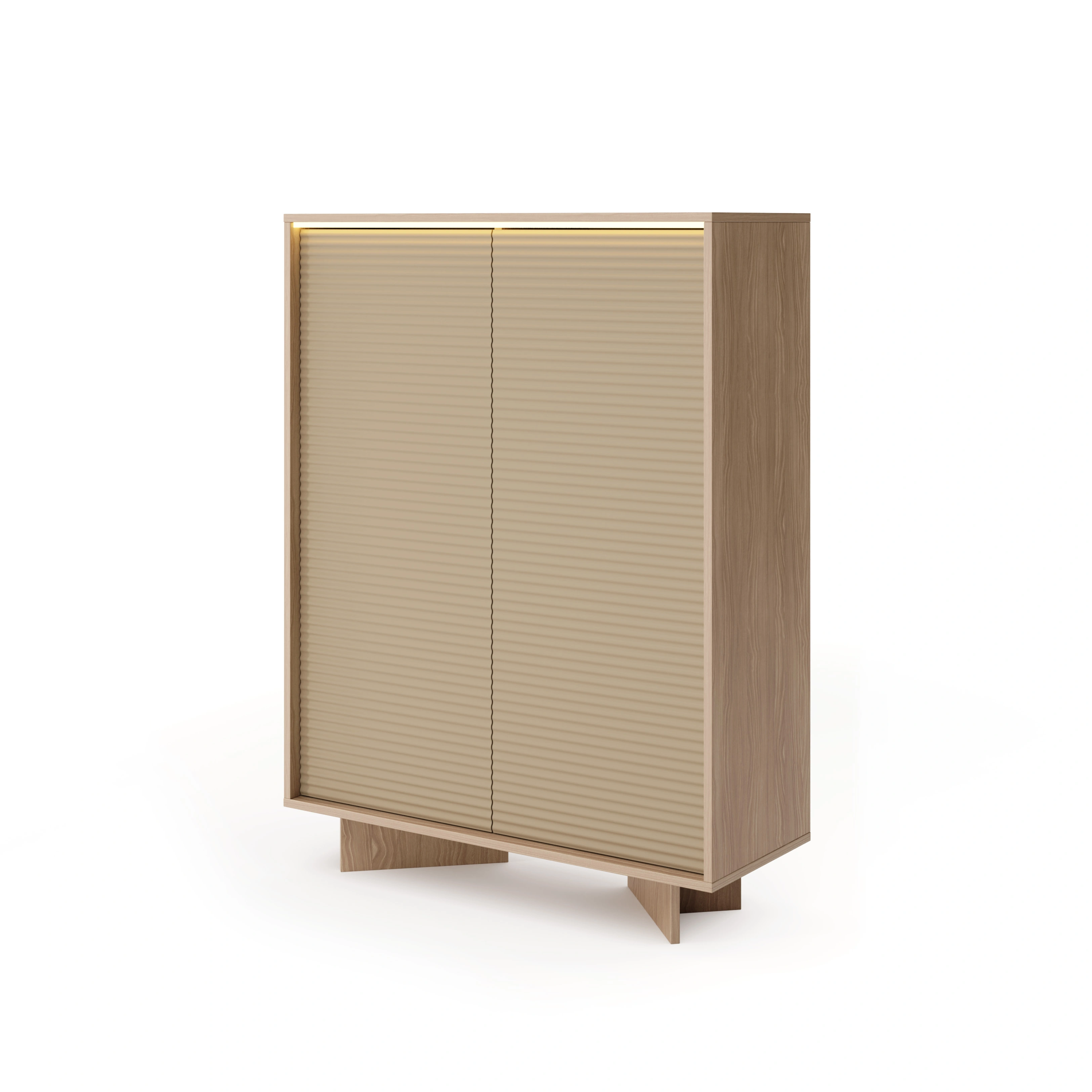 Highboard 104x138 cm SEMI 2-türig Cappuccino / Helle Holzoptik Rillenfront mit LED
