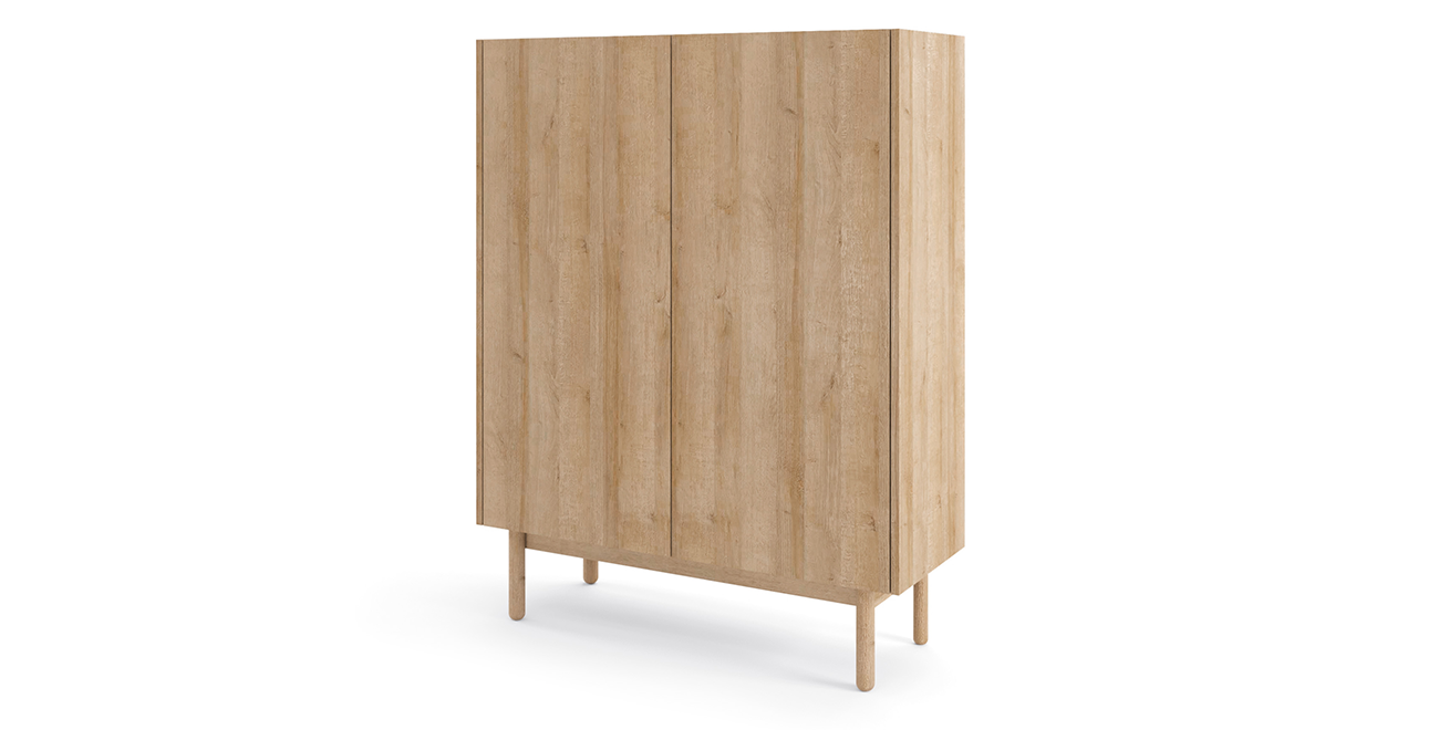 - Maximaler Stauraum: Hinter den zwei Türen verbergen sich tiefe, geräumige Fächer. Zusammen mit großzügigen Schubladen bietet das Highboard wertvollen Platz für Geschirr, Bücher, Dokumente oder Wohnaccessoires.