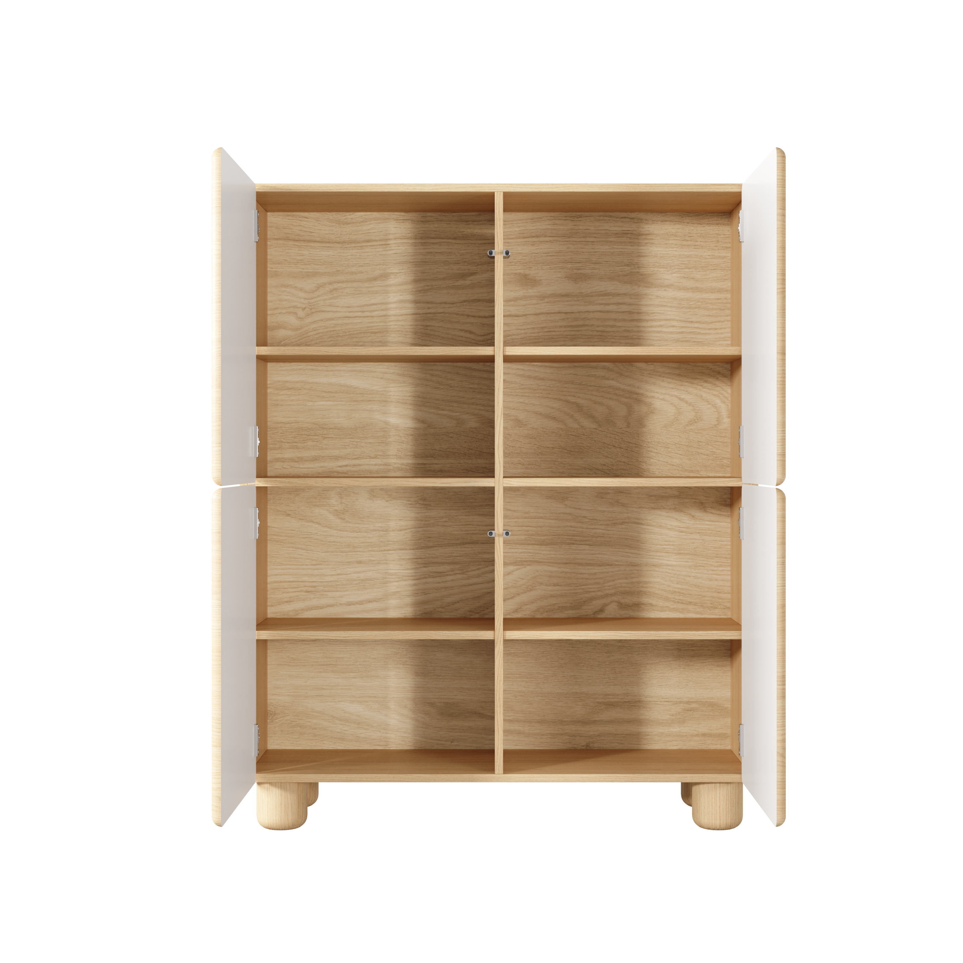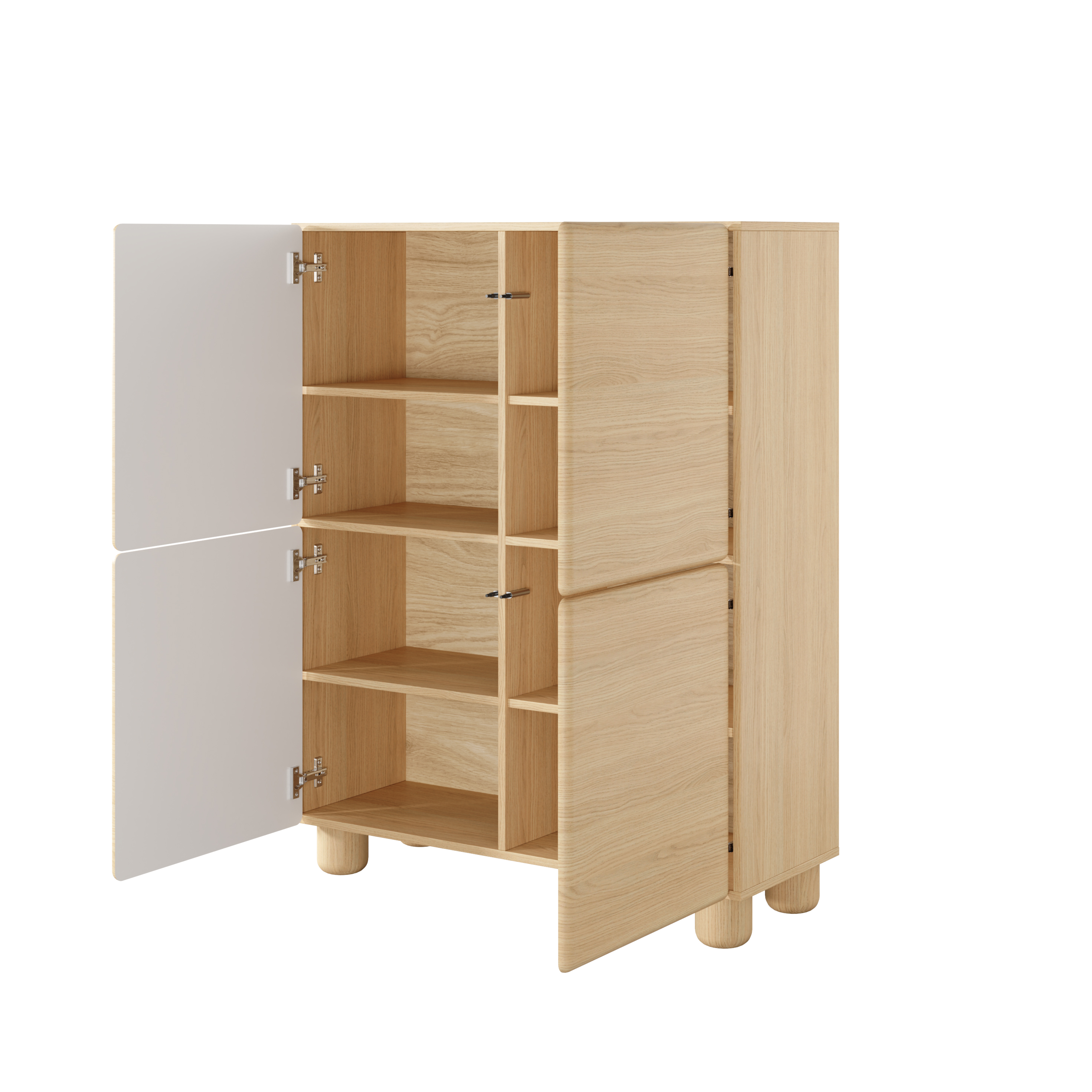 Highboard LOMO 4D (100 cm) Holzbeine, Push-to-Open, abgerundet – Helles Holz