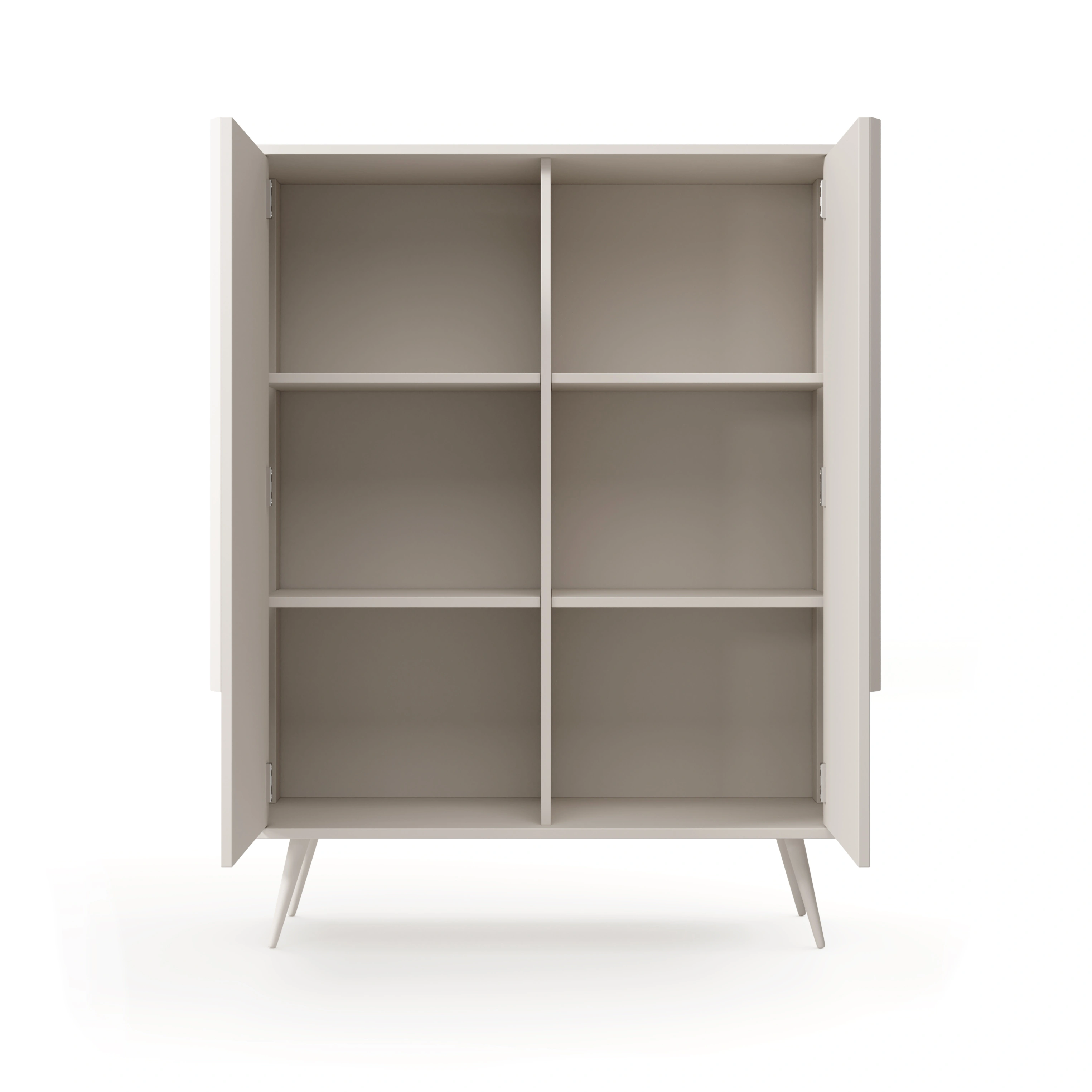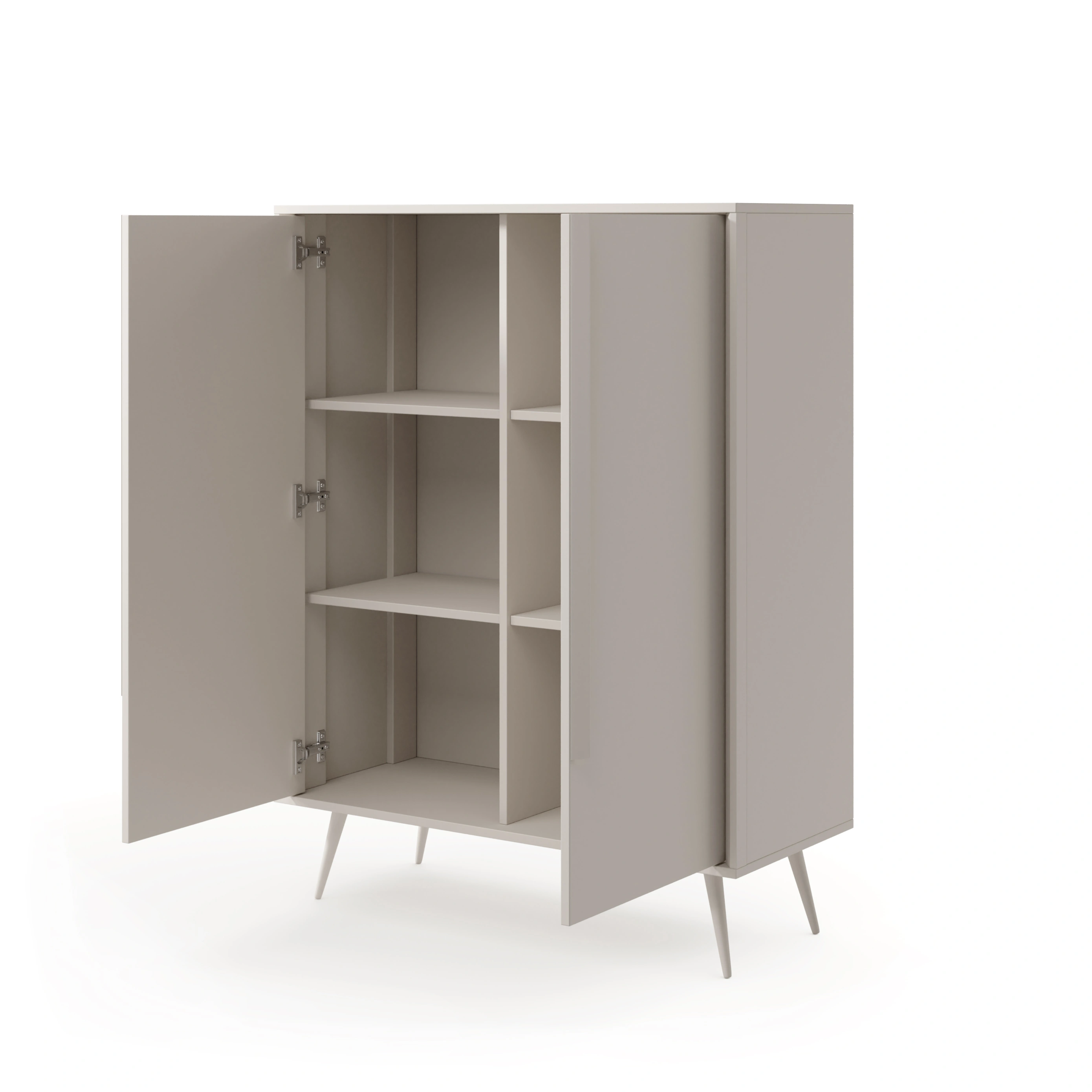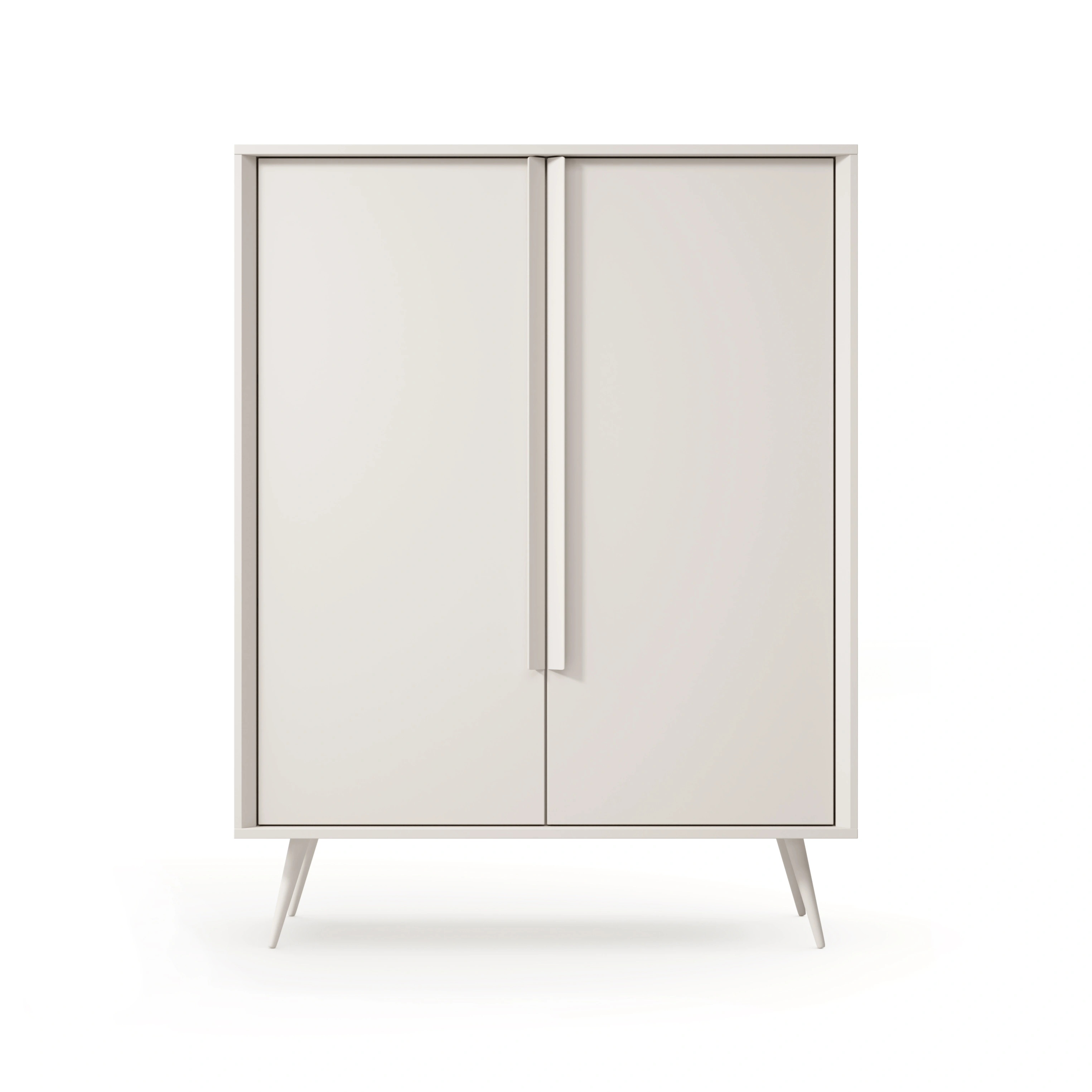 Die Kollektion MAVERA ist die perfekte Wahl für alle, die eine ruhige, entspannende Ästhetik mit einem modernen Touch und einer Prise Originalität suchen. Diese 2-türige Hochkommode besticht durch ihren subtilen Farbton in Kaschmir, der perfekt mit der minimalistischen Form und den schlanken, hohen Beinen harmoniert. Dank der raffinierten Details präsentiert sich das Möbelstück leicht, modern und absolut zeitlos.