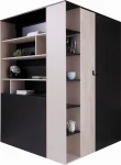Das Kit enthält unter anderem ein Bett mit ausziehbarer Blende, mit Regalen, wo eine große Liegefläche für optimalen Ruhekomfort sorgt. Zudem dient eine Eckgarderobe als kleiner, privater Kleiderschrank, was den Wert des Angebots deutlich steigert. Dieses Set besteht aus hochwertiger Möbelplatte, die eine langfristige Nutzbarkeit garantiert.