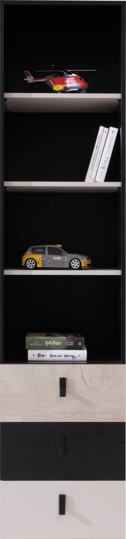 - Bücherregal mit Schubladen PL07 Planet - Schwarz / Eiche / Beż