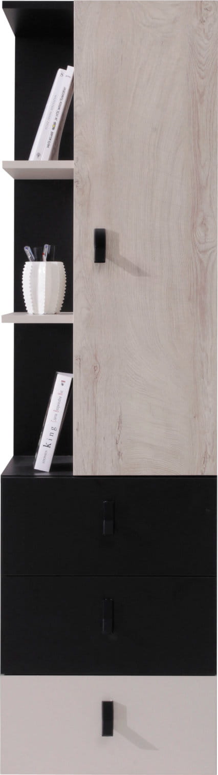 - Bücherregal mit Schubladen PL06 Planet - Schwarz / Eiche / Beż
