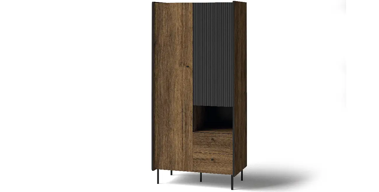 Kleiderschrank NERO P1 | mit Lamellen | Nussbaum Warmia & Schwarz | Loft industrial