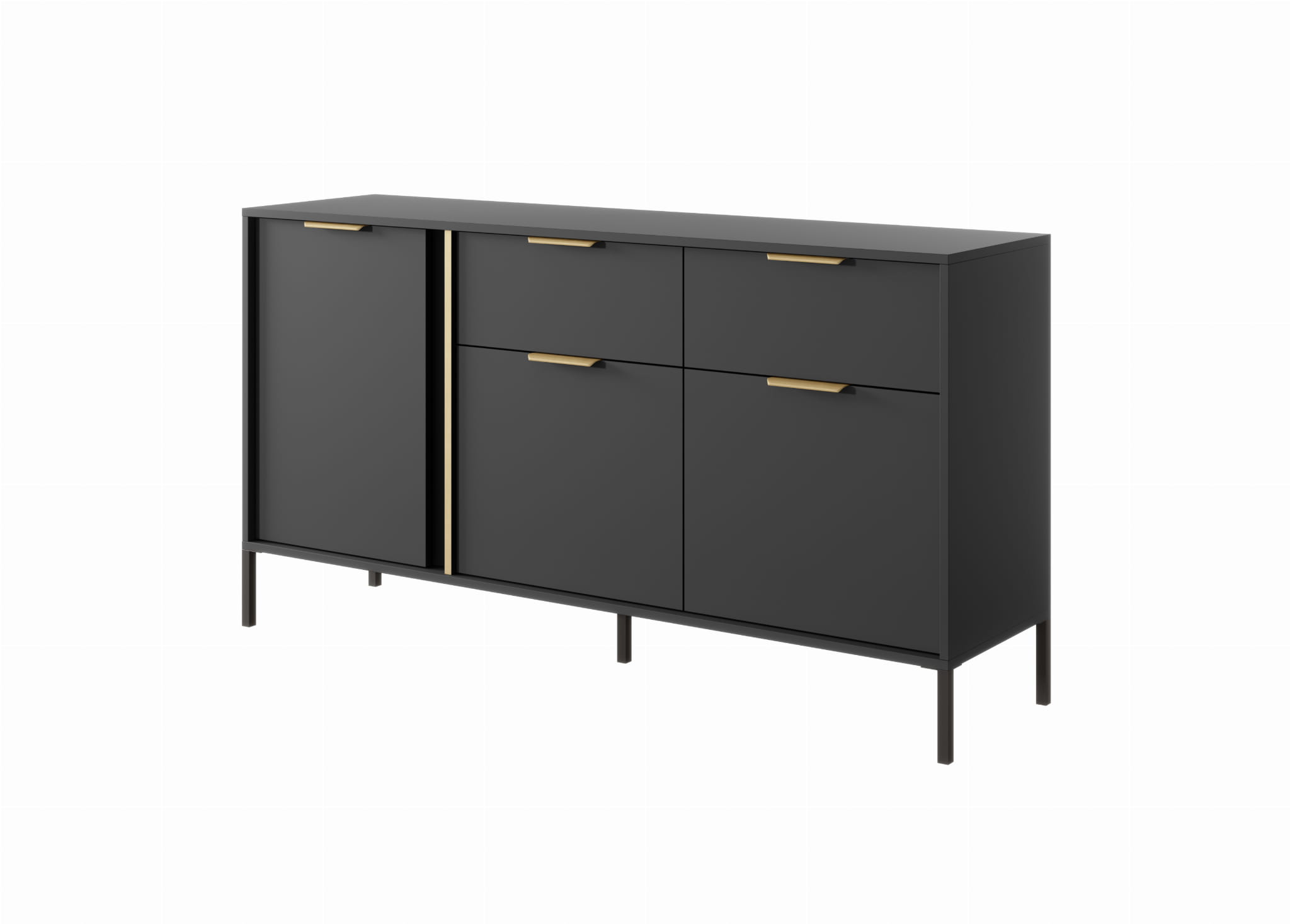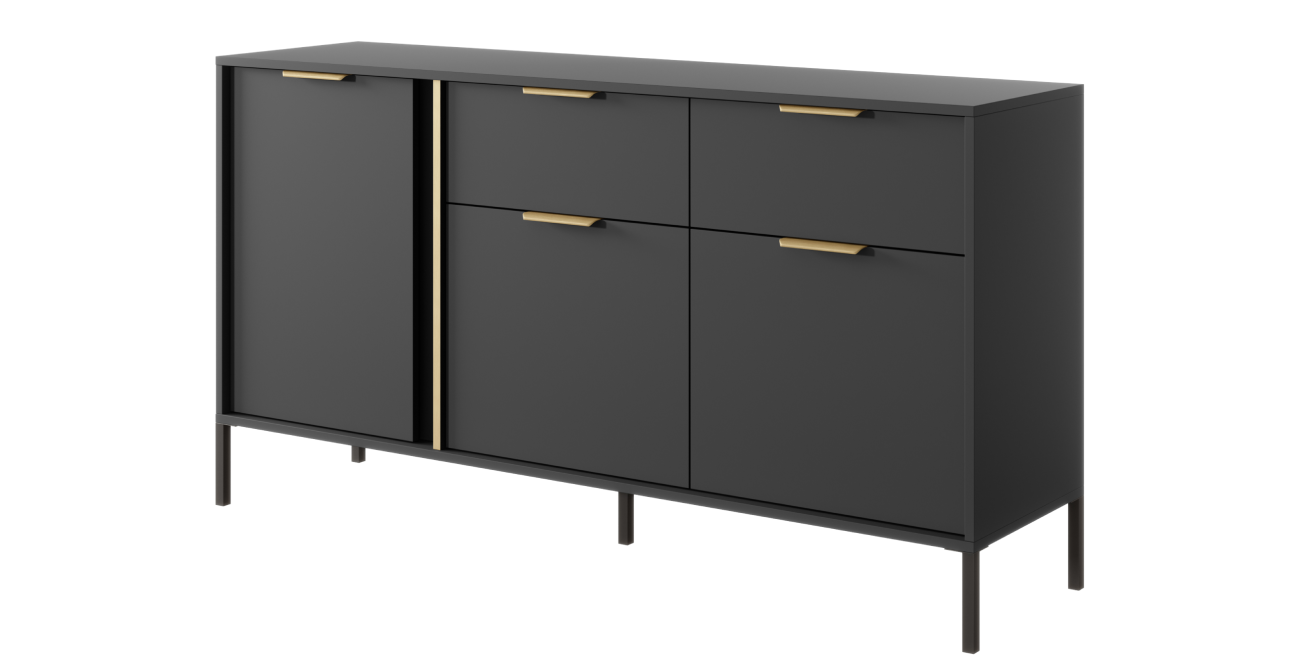 LARS ist ein ungewöhnliches Mosaik aus Geschmack, Stil und Chic, das auch die anspruchsvollsten Kunden ansprechen wird. Das klassische Anthrazit wurde mit goldenen ABS-Einfassungen an der Trennwand und goldenen Griffen veredelt, was den Möbeln Eleganz und einzigartigen Stil verleiht. Mit der Kollektion LARS können Sie ganz einfach ein modisches und funktionelles Wohnzimmer einrichten.