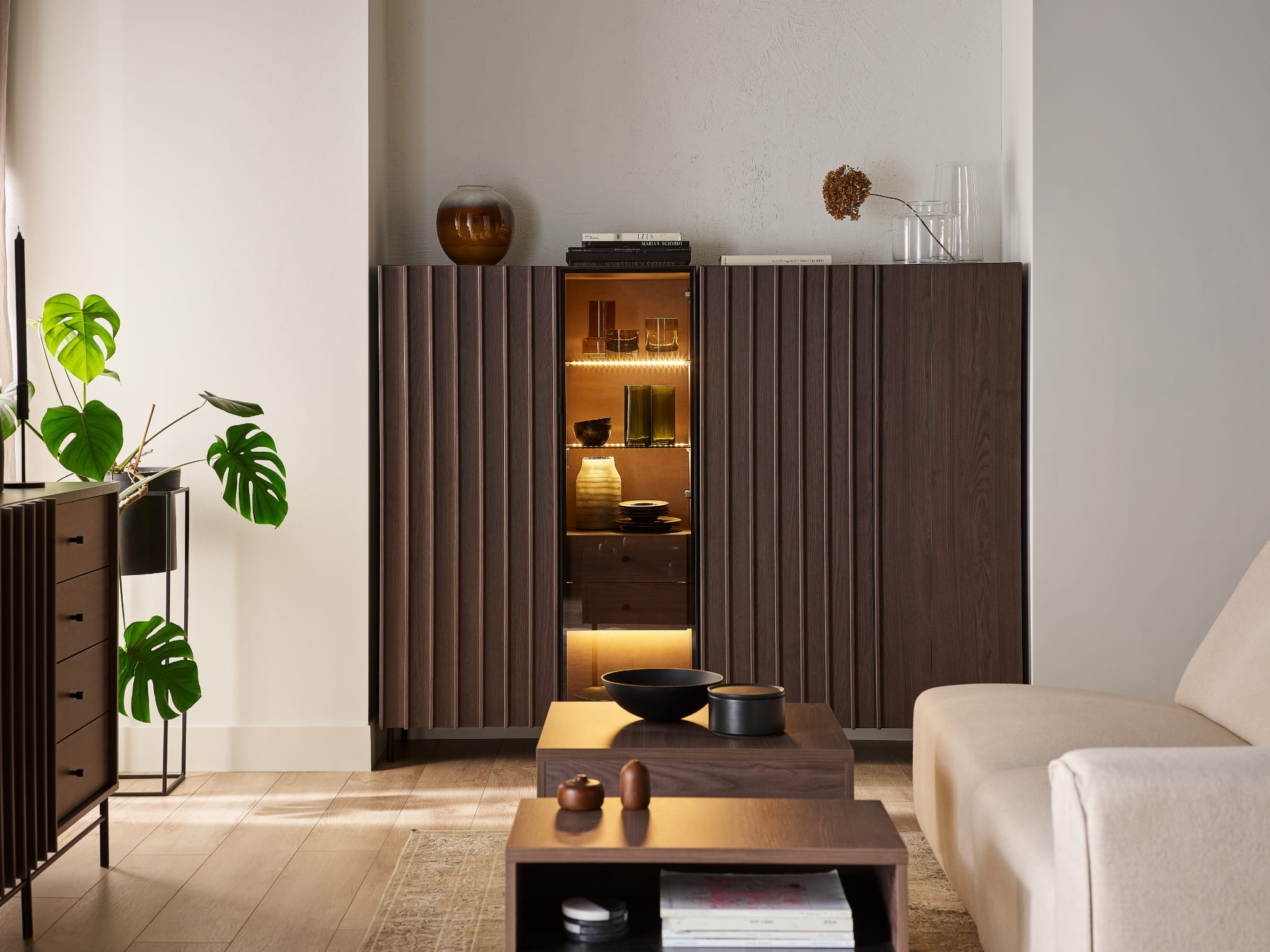 Wenn Sie eine stilvolle Kommode kaufen, investieren Sie in ein Möbelstück, das nicht nur eine praktische, sondern auch eine dekorative Funktion hat. Eine stilvolle Kommode ist nicht nur ein praktisches Möbelstück zur Aufbewahrung von Gegenständen, sondern auch ein originelles Gestaltungselement für Ihr Wohnzimmer. Dank ihres eleganten Designs wird die Kommode zur perfekten Ergänzung der Einrichtung und unterstreicht den Stil Ihrer Wohnung. Diese Kommode aus der PIEMNOTE-Kollektion verfügt über ein gut durchdachtes Innenleben, so dass sie mehr Platz bietet, als Sie denken. Die schlanken Metallbeine, die dezenten Leisten und die originelle Farbgebung sorgen dafür, dass es in einem so eingerichteten Wohnzimmer nicht langweilig wird!