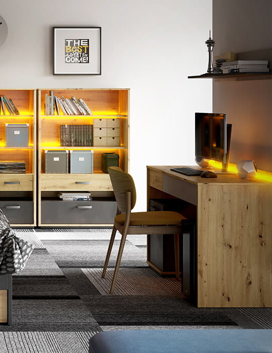 Die Möbel bestehen aus einer haltbaren laminierten Platte, die mit einer haltbaren ABS-Kante versehen ist.