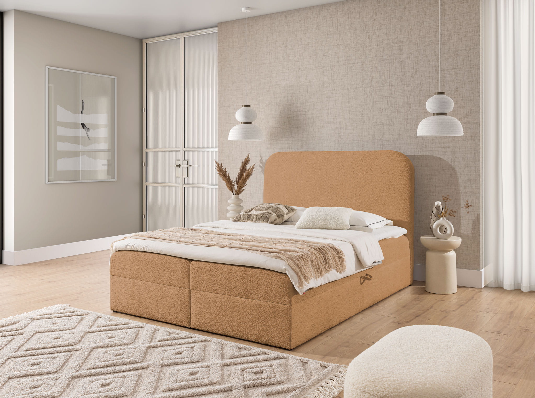 Das Boxspringbett ALBA ist die perfekte Kombination aus eleganter Ästhetik, Funktionalität und unvergleichlichem Komfort. Es fügt sich nahtlos in moderne, minimalistische sowie klassische Schlafzimmer ein. Die sanfte, organische Formgebung mit dem trendig abgerundeten Kopfteil und der flauschigen Polsterung machen dieses Bett zu einem echten optischen Highlight. Dank der integrierten Bonell-Federkernmatratze und dem gemütlichen Topper verwandelt ALBA Ihr Schlafzimmer in eine luxuriöse Wohlfühloase.