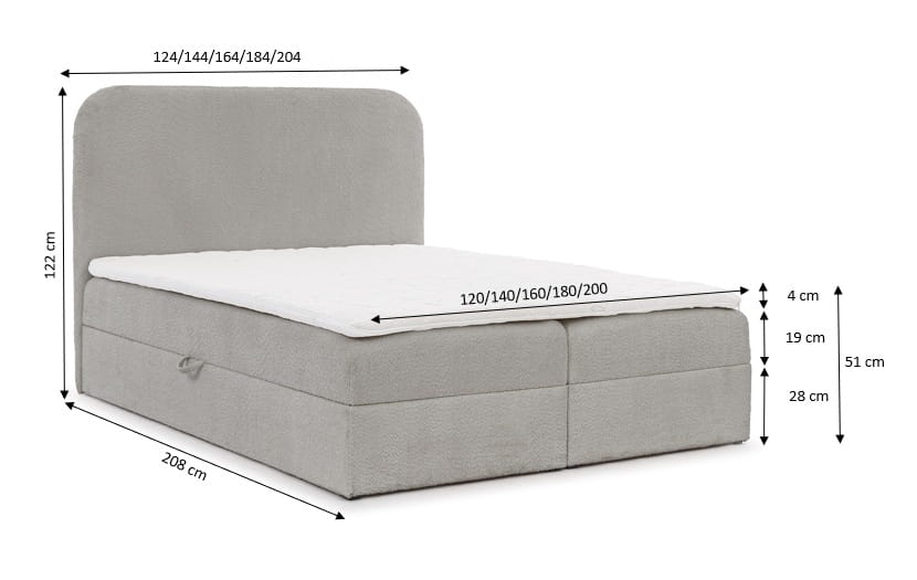 - Bettseitenhöhe: ca. 51 cm (Komfortable Einstiegshöhe)