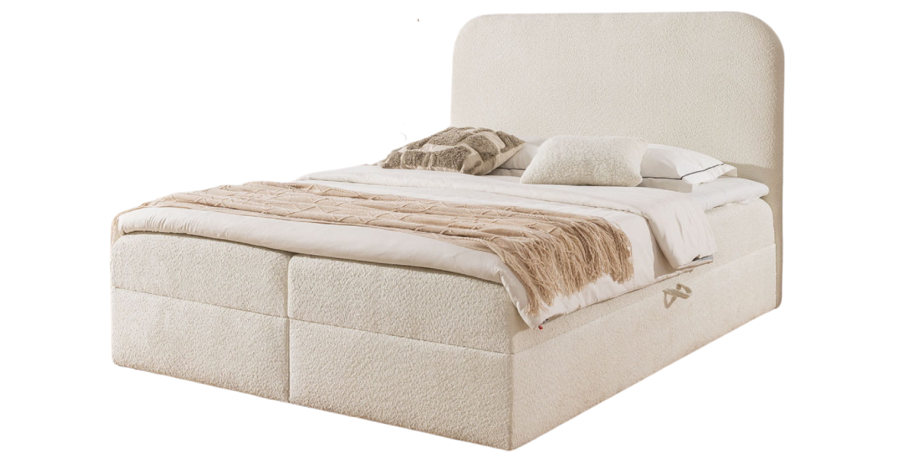 Das Boxspringbett ALBA ist die perfekte Kombination aus eleganter Ästhetik, Funktionalität und unvergleichlichem Komfort. Es fügt sich nahtlos in moderne, minimalistische sowie klassische Schlafzimmer ein. Die sanfte, organische Formgebung mit dem trendig abgerundeten Kopfteil und der flauschigen Polsterung machen dieses Bett zu einem echten optischen Highlight. Dank der integrierten Bonell-Federkernmatratze und dem gemütlichen Topper verwandelt ALBA Ihr Schlafzimmer in eine luxuriöse Wohlfühloase.