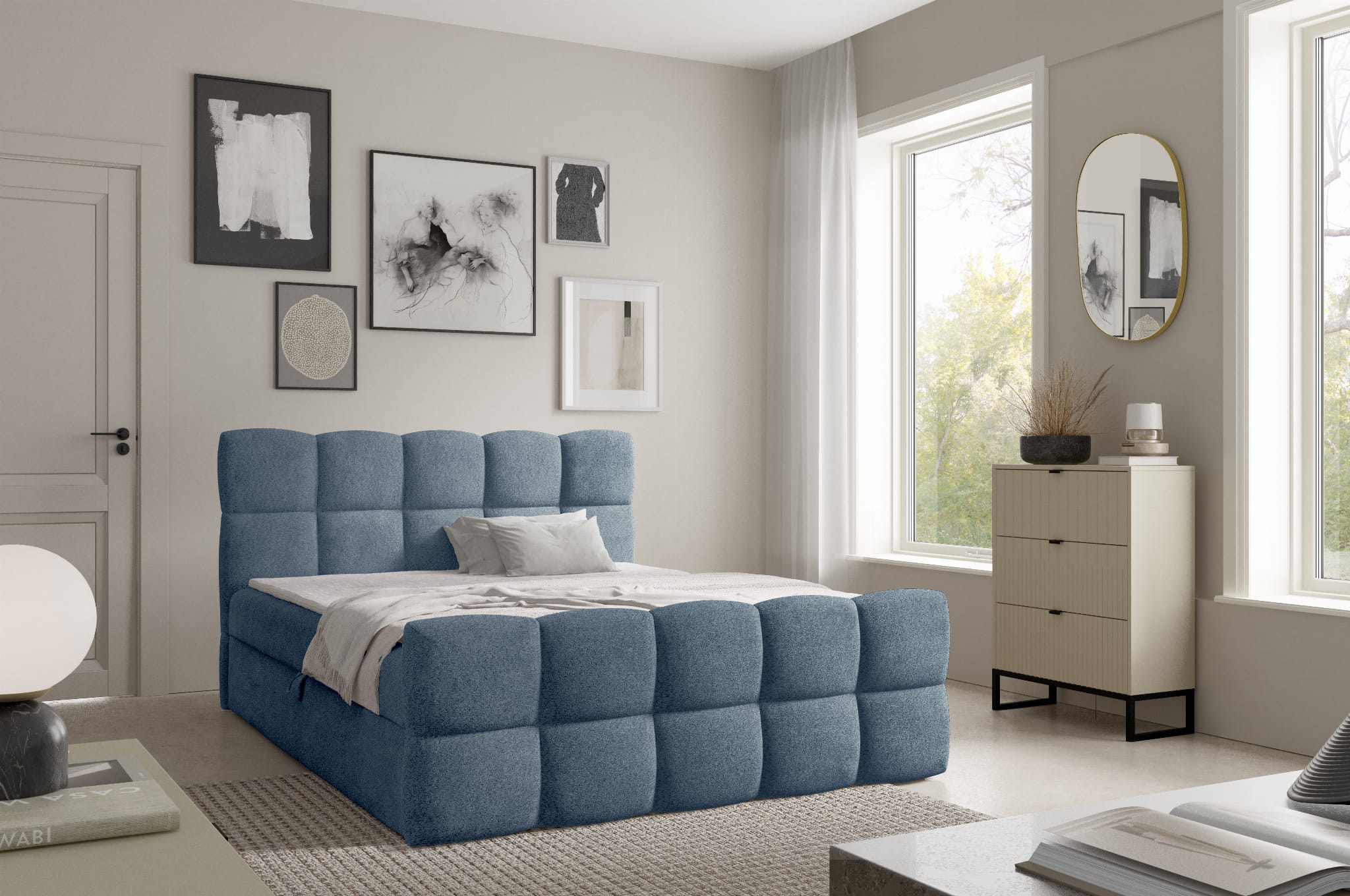 Verwandeln Sie Ihr Schlafzimmer in eine stilvolle Wohlfühloase! Das Boxspringbett VALENTINO ist die perfekte Kombination aus modernem Design, höchster Bequemlichkeit und intelligenter Funktionalität. Ausgestattet mit einer hochwertigen Taschenfederkernmatratze und einem kuscheligen Topper, passt es sich der Körperform optimal an und sorgt für einen gesunden, erholsamen Schlaf. Das absolute optische Highlight ist der trendige Bouclé-Stoff sowie das elegant gesteppte Kopfteil, das zum gemütlichen Anlehnen beim Lesen oder Fernsehen einlädt.
