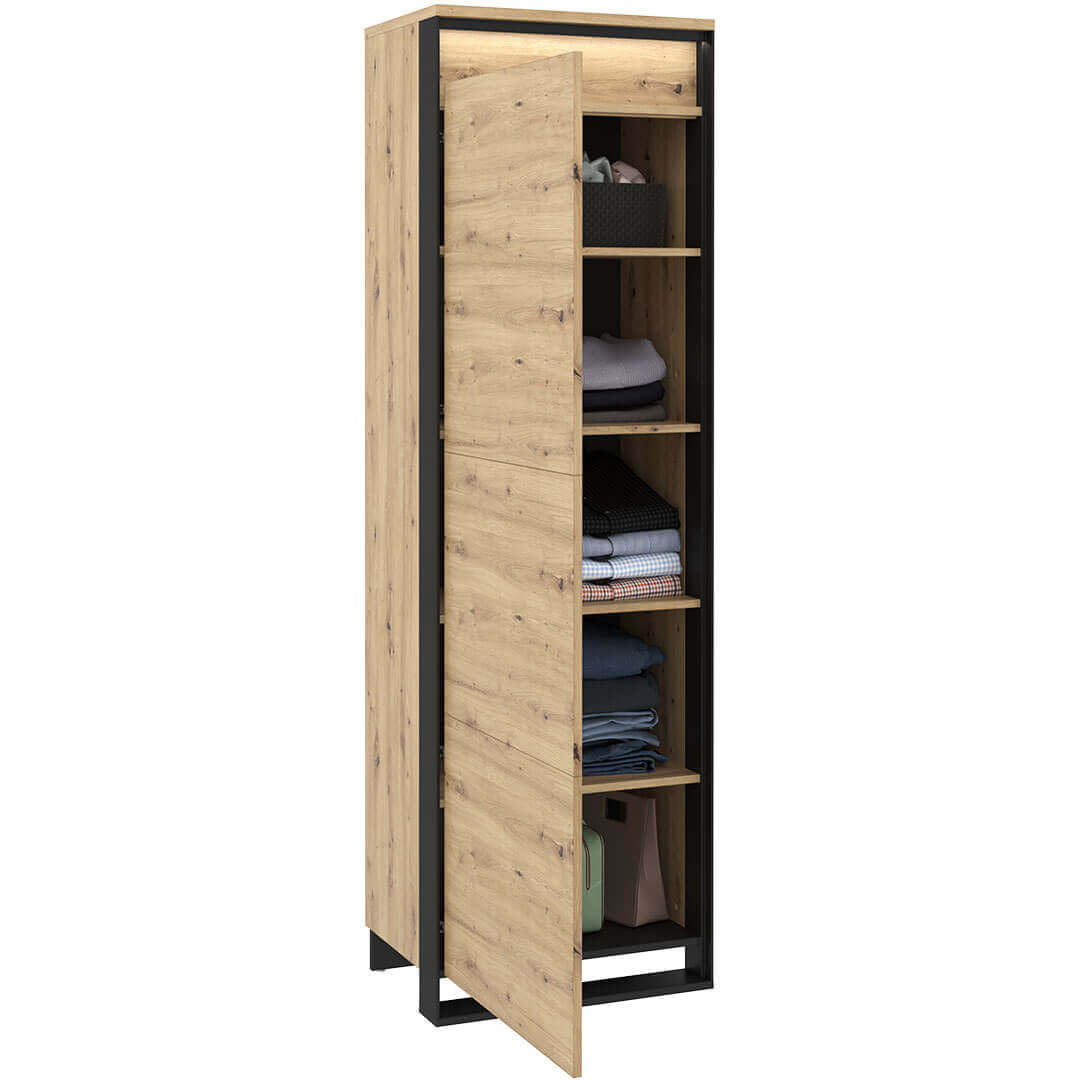 Mehrzweckschrank QUANT 60 cm Eiche Artisan Schwarz Loft Kleiderschrank mit LED