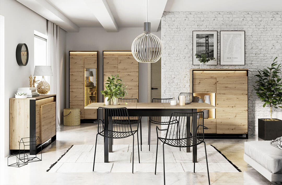 - Farbe: Eiche Artisan (warme Holzoptik) / Schwarz