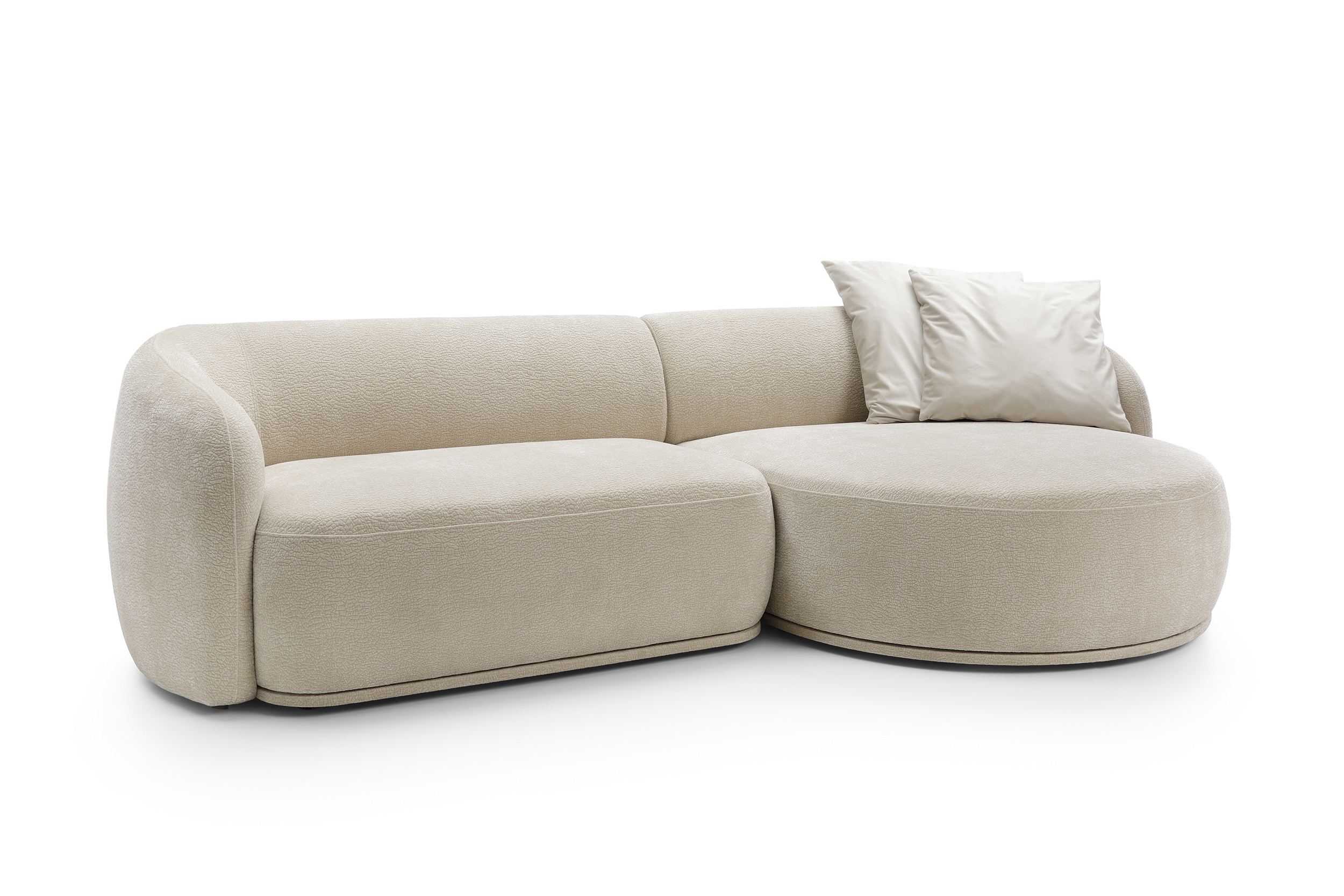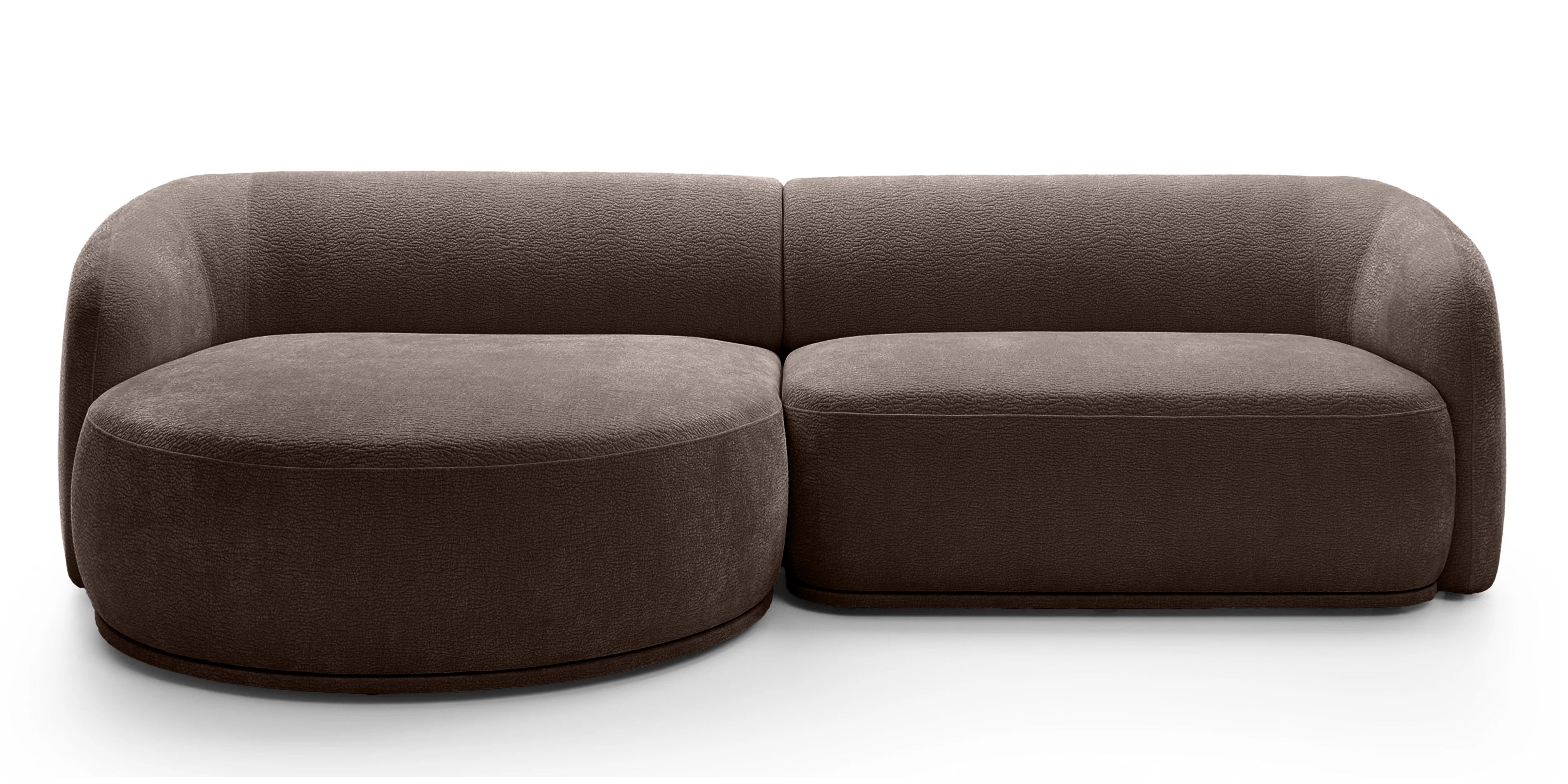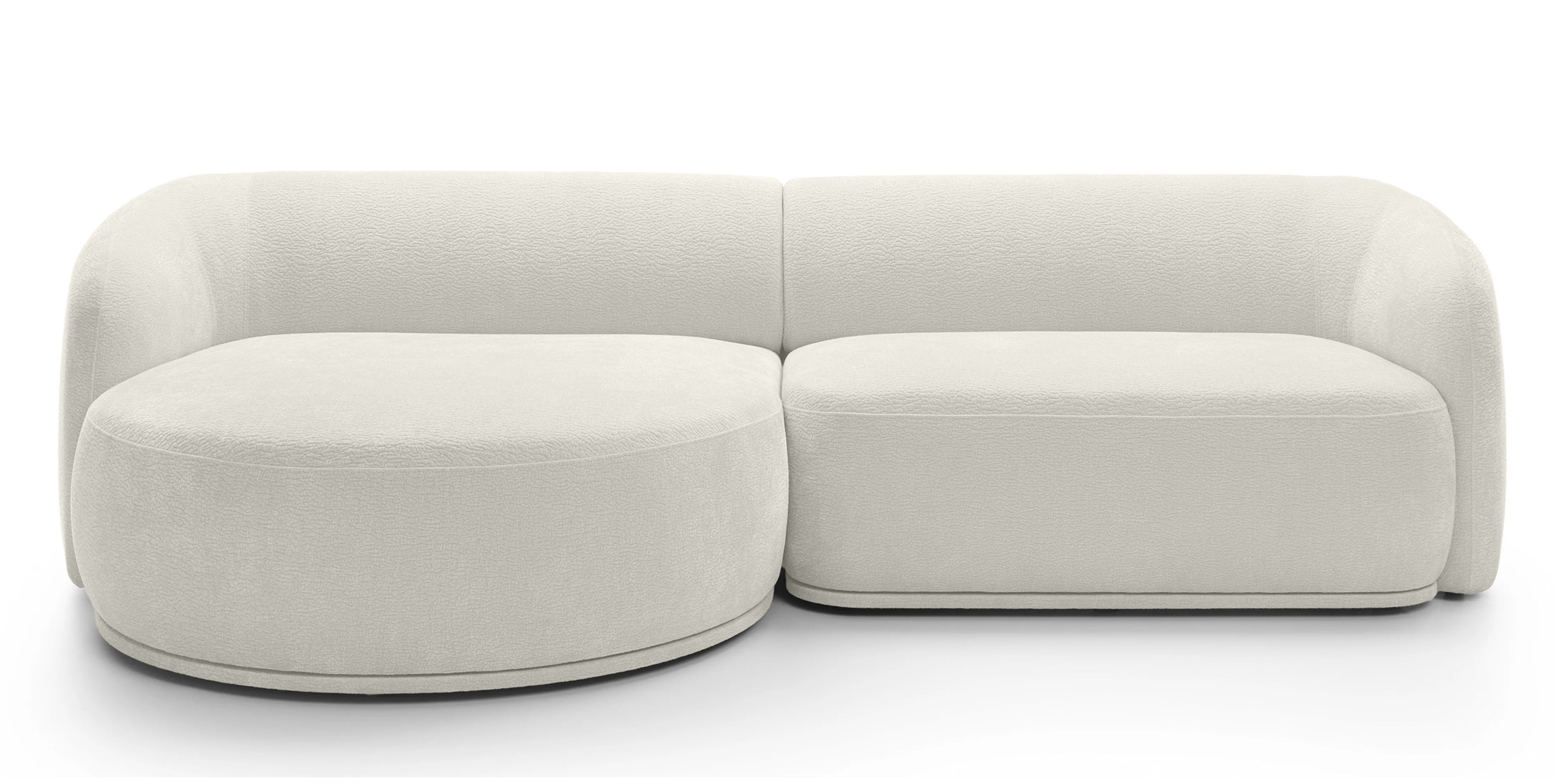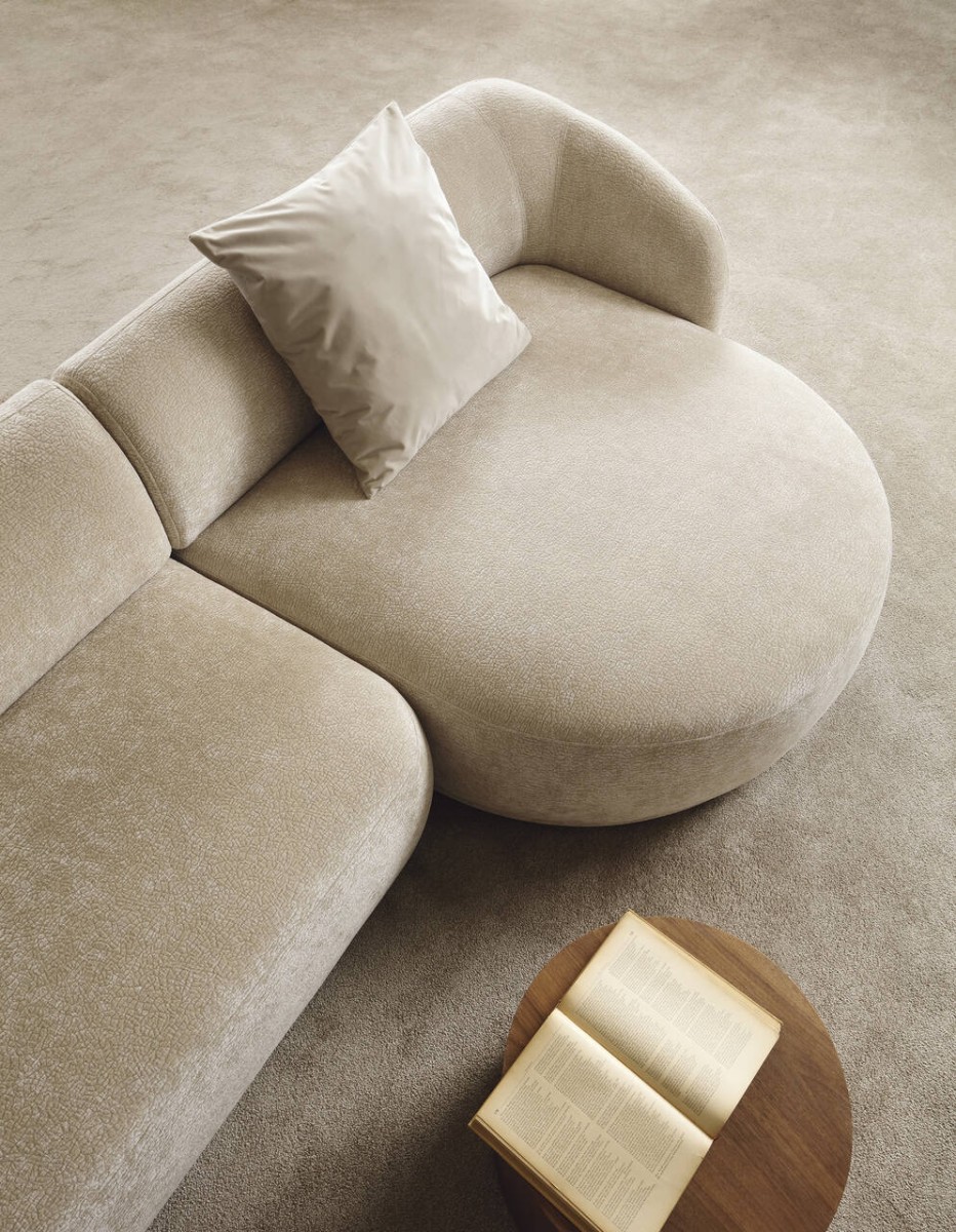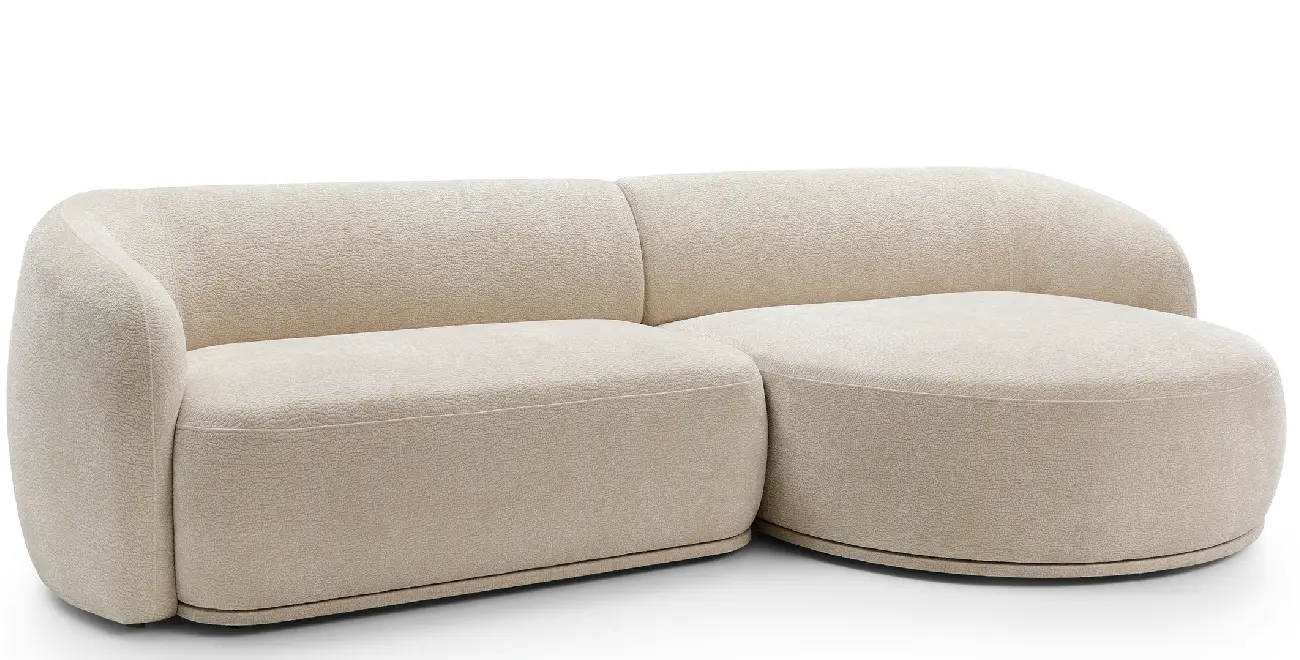 Das Ecksofa NOBO kombiniert ein modernes, harmonisches Design mit außergewöhnlichem Komfort. Die organischen, abgerundeten Formen und der luxuriöse Chenille-Stoff (Kollektion Dress Me) schaffen eine einladende Atmosphäre und machen das Sofa zum Mittelpunkt des Wohnzimmers.