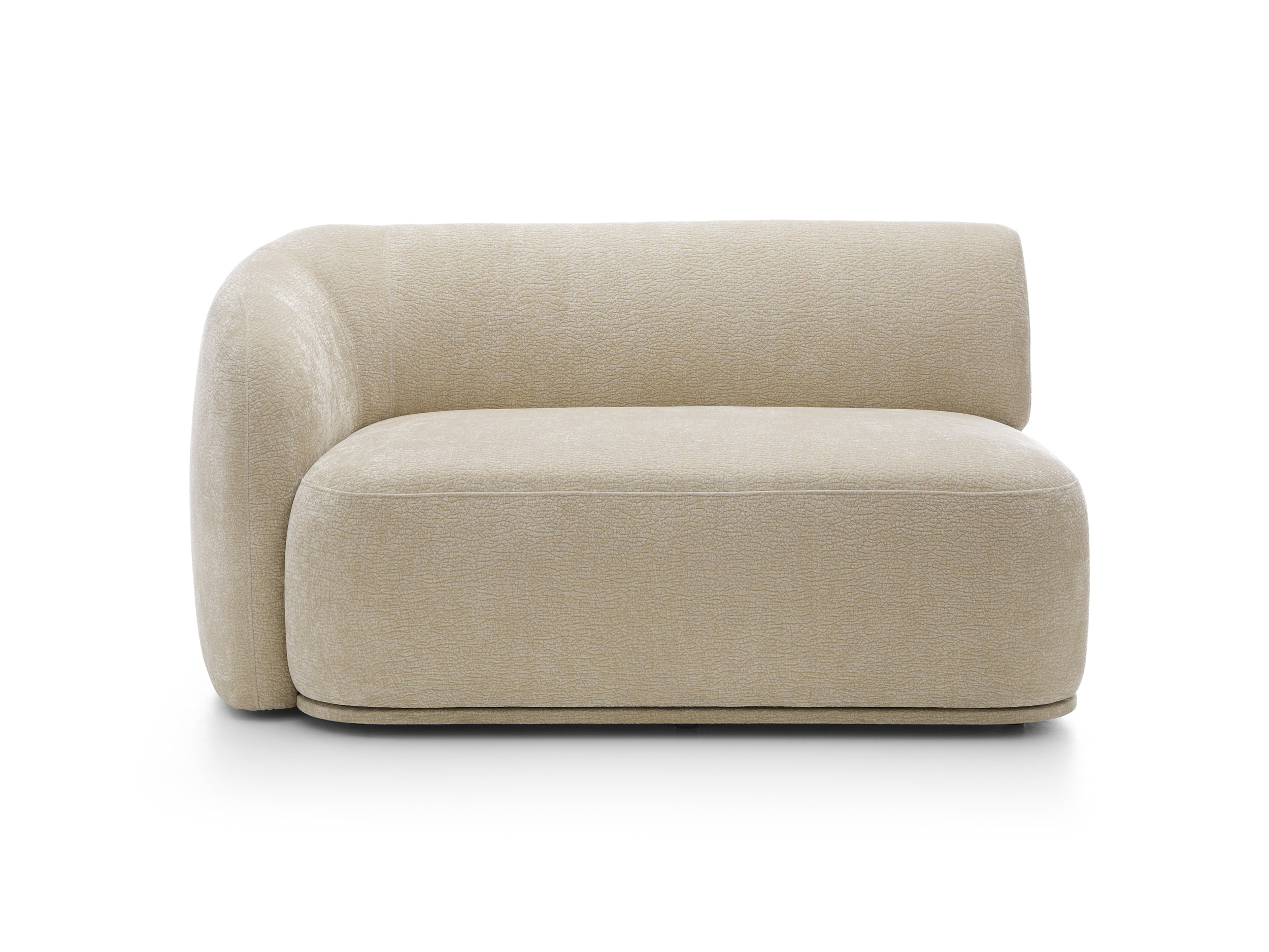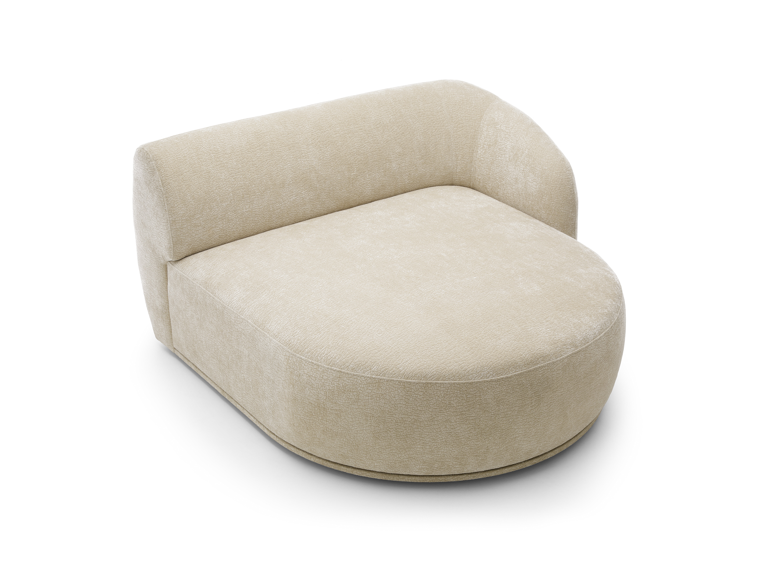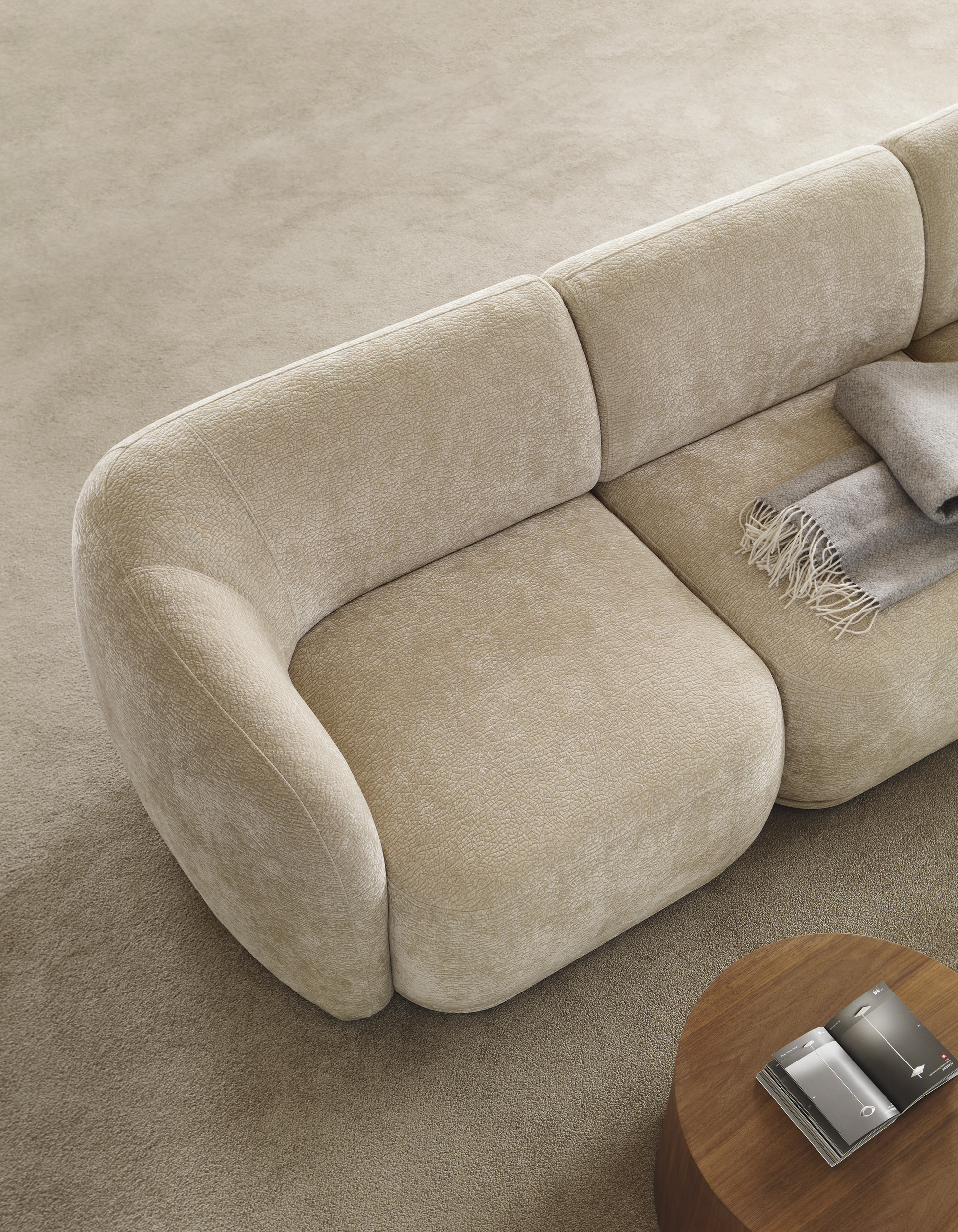 Das modulare Ecksofa NOBO kombiniert ein modernes, harmonisches Design mit außergewöhnlichem Komfort. Die organischen, abgerundeten Formen und der luxuriöse Chenille-Stoff (Kollektion Dress Me) schaffen eine einladende Atmosphäre und machen das Sofa zum Mittelpunkt des Wohnzimmers.