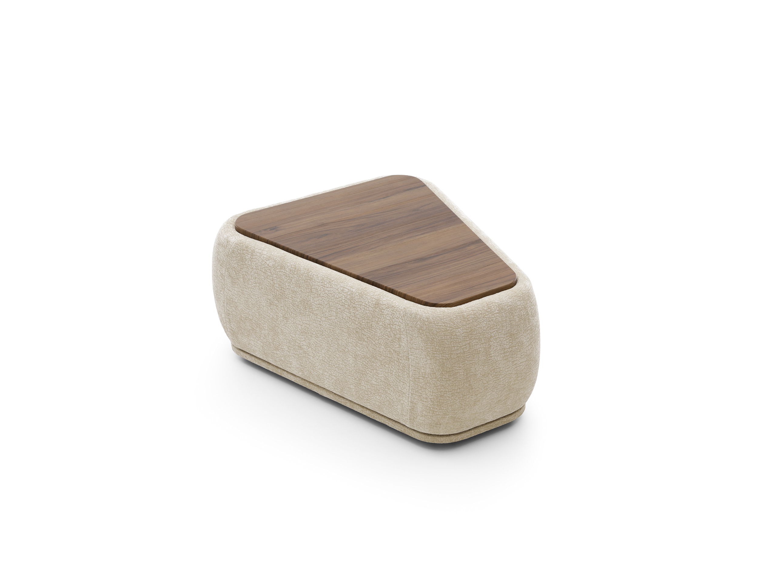 - Funktionalität: Der Hocker ist mit einer Tischplatte in der Farbe "Nussbaum Warmia" ausgestattet und dient als praktischer Couchtisch.