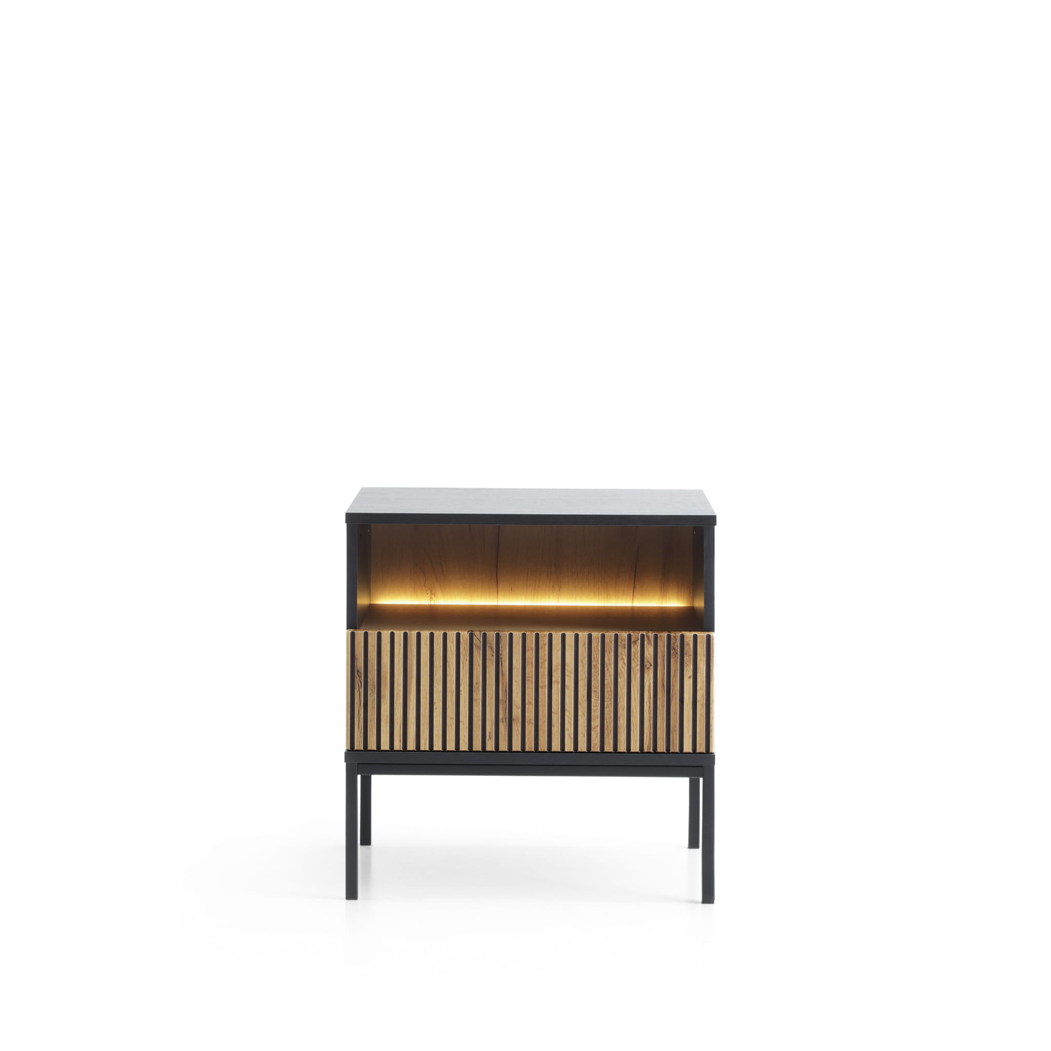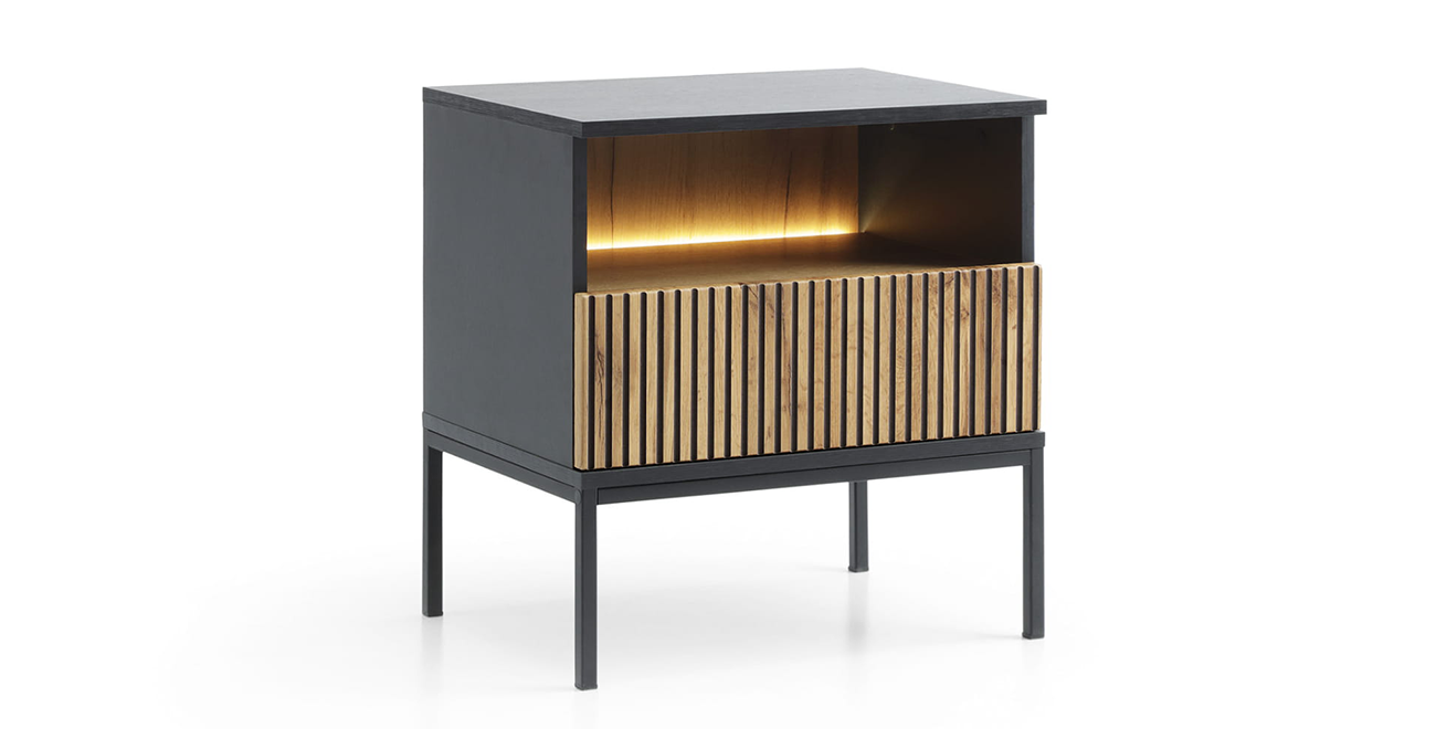 Nachttisch SANTIA 1S – Industrial Design Schwarz & Eiche – LED-Fach