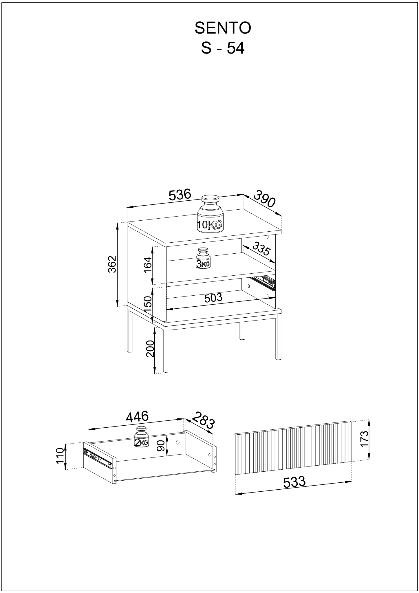 Das offene Fach wird durch die integrierte LED-Beleuchtung perfekt in Szene gesetzt – für Modernität und eine angenehme Atmosphäre am Abend. Dank der praktischen Schublade (1S) haben Sie Ihre wichtigsten Utensilien stets griffbereit und blickdicht verstaut. Die kratzfeste laminierte Platte und die hochwertigen ABS-Kanten gewährleisten eine extrem hohe Beständigkeit der Möbel gegen Beschädigungen und Abplatzungen.
