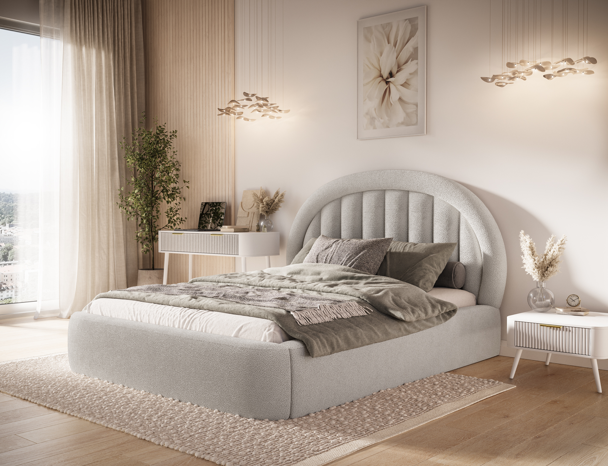 Polsterbett BELLA 160x200 cm | Bogen-Kopfteil | Trendstoff Bouclé | Design-Bett