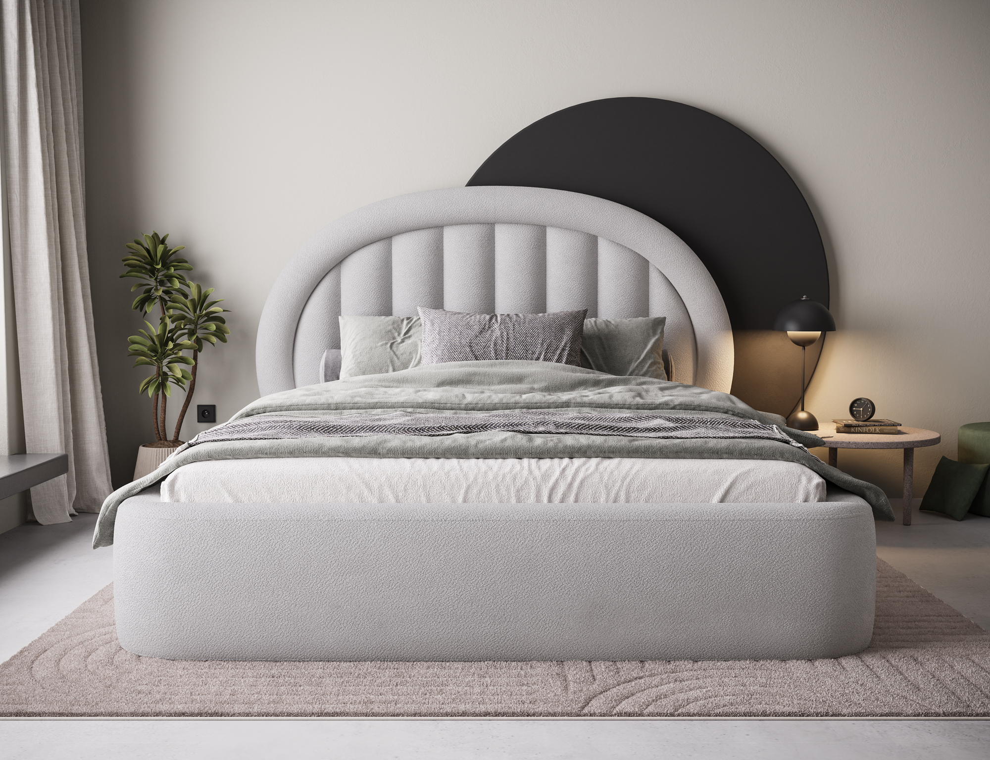 Polsterbett BELLA 180x200 cm | Bogen-Kopfteil | Trendstoff Bouclé | Design-Bett
