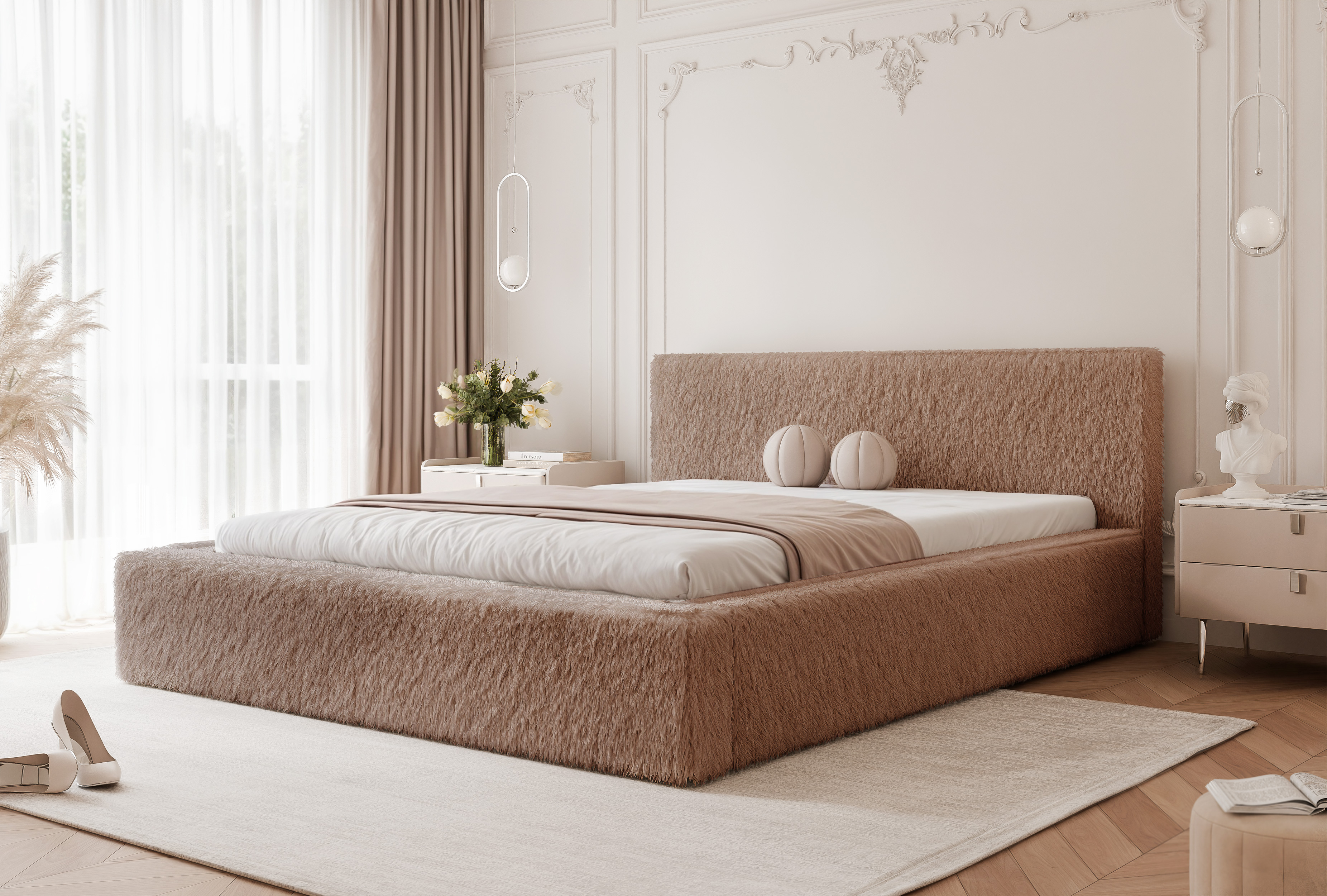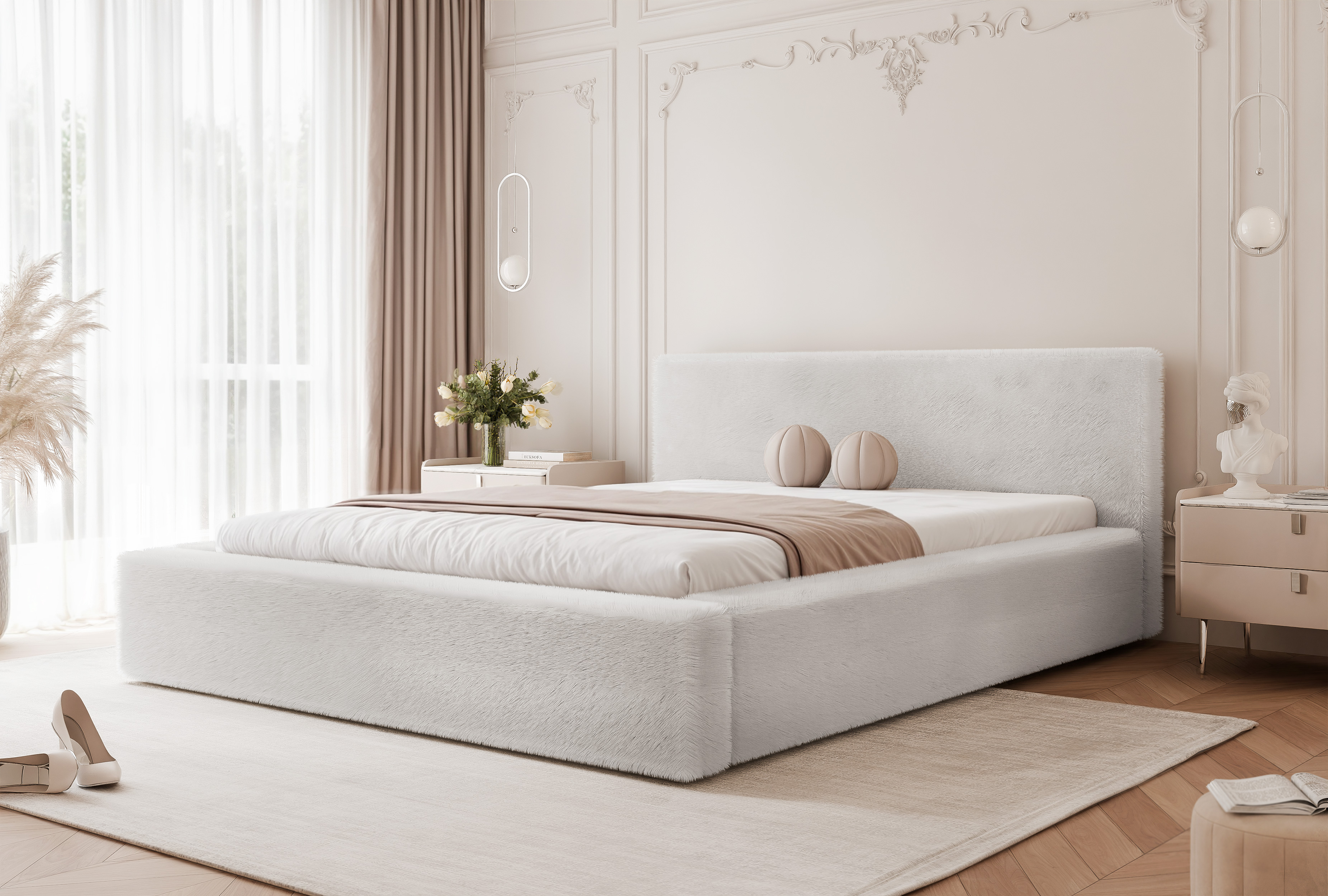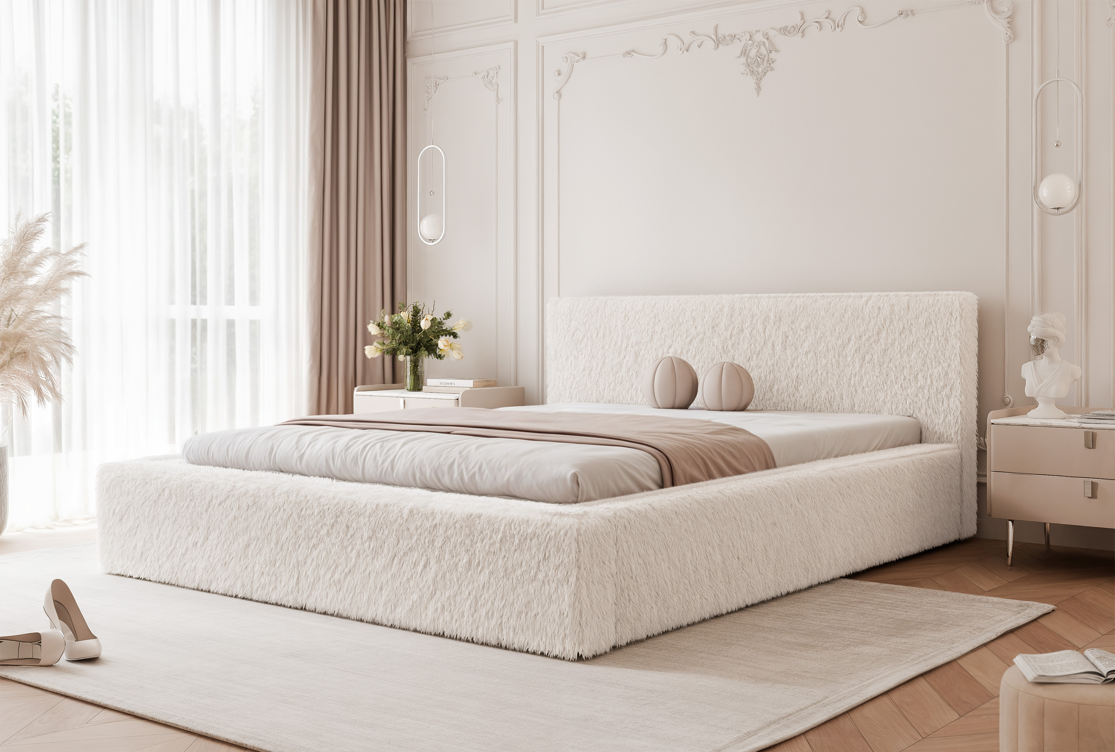 Das Fluffy Polsterbett vereint stilvolles Design mit außergewöhnlichem Komfort und wird zu einem luxuriösen Mittelpunkt in Ihrem Schlafzimmer. Mit seinem flauschigen, fellartigen Bezug sorgt das Bett nicht nur für eine gemütliche Schlafumgebung, sondern schafft auch eine elegante, einladende Atmosphäre. Ideal für moderne Schlafzimmer, in denen Komfort und Stil im Mittelpunkt stehen.