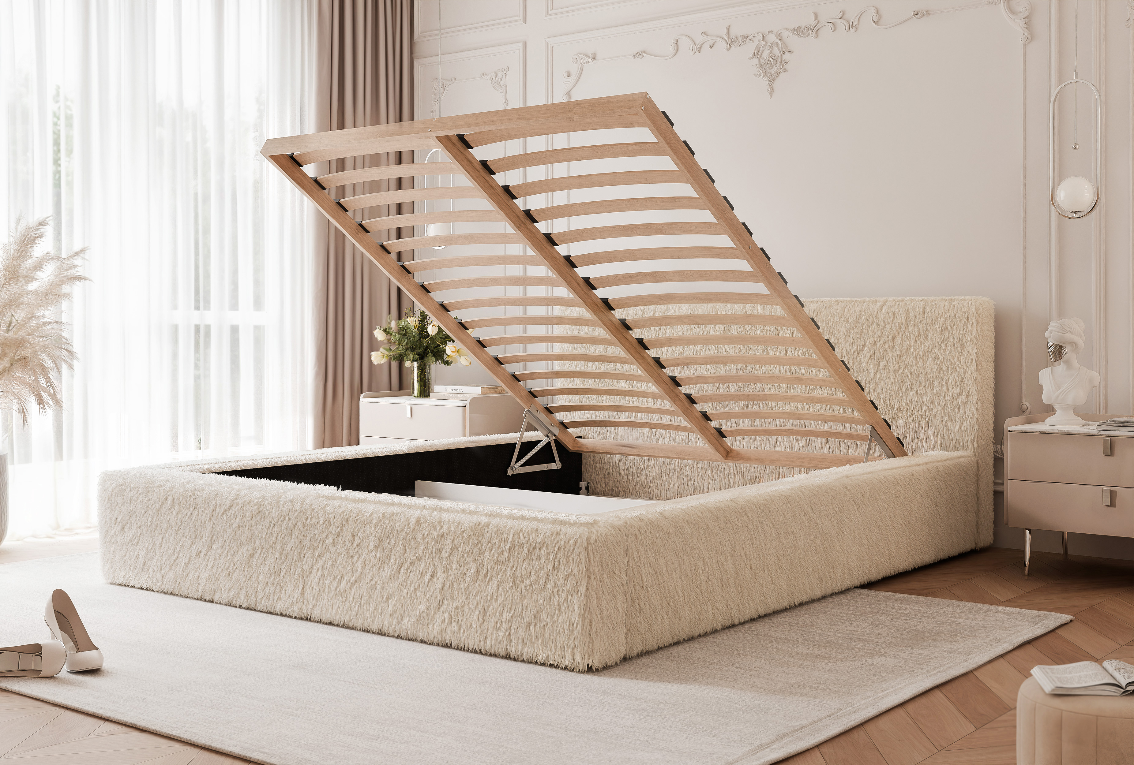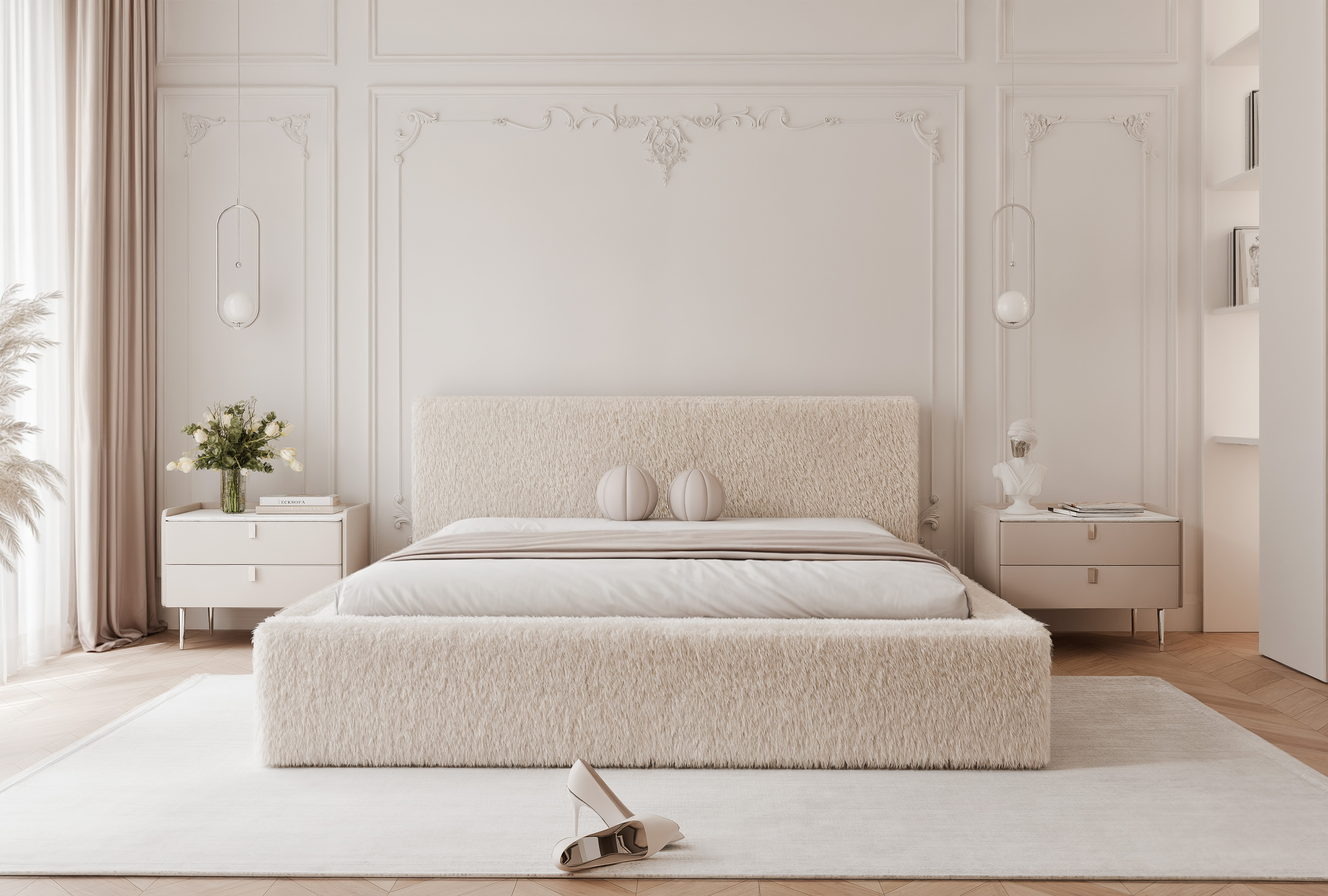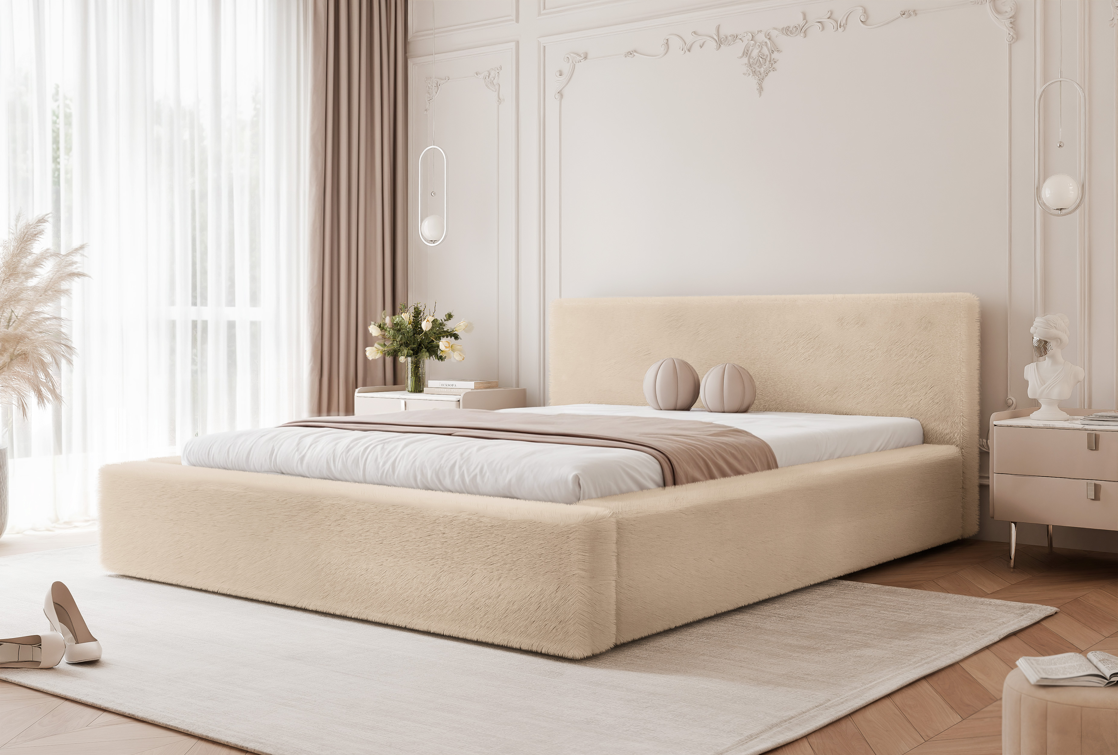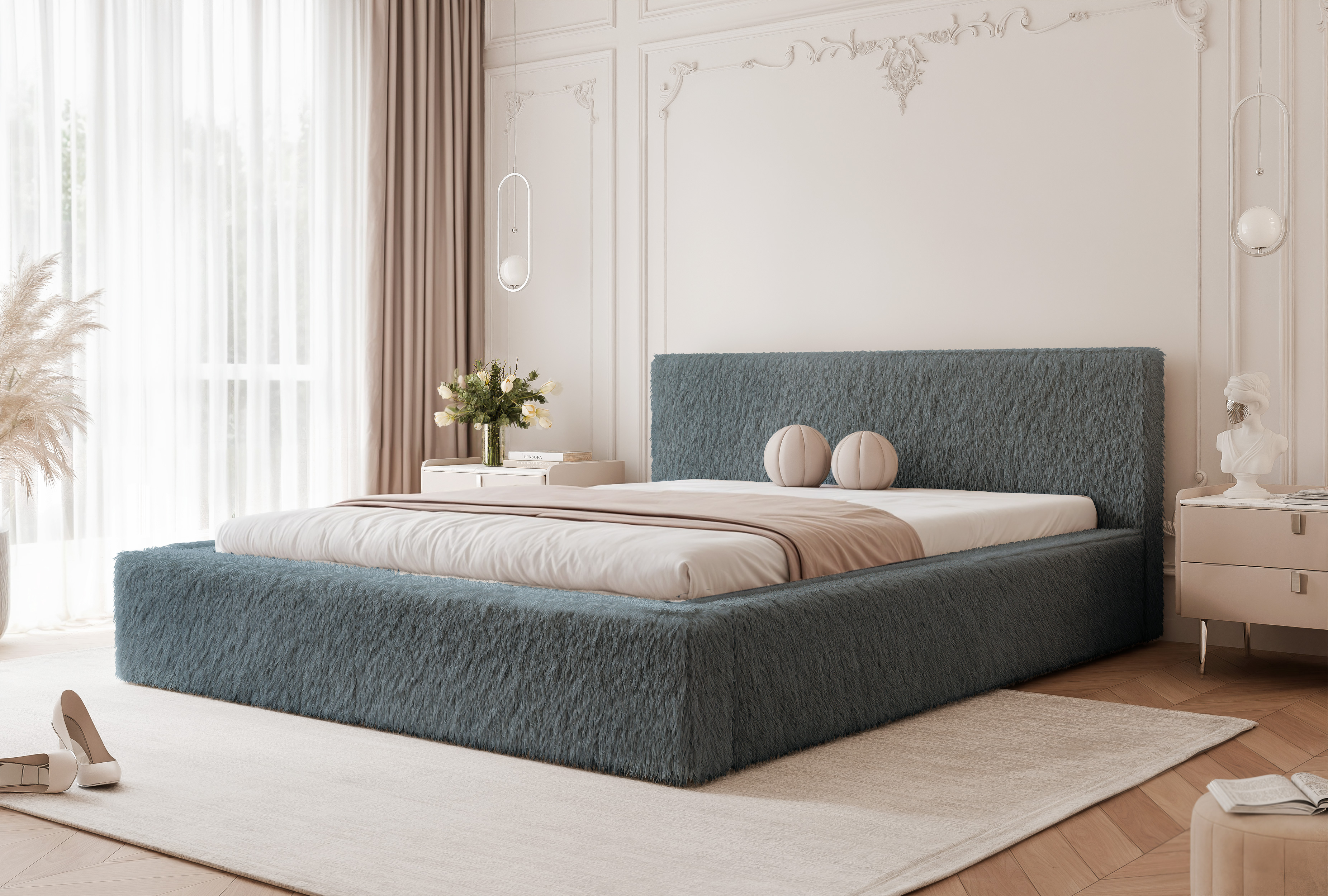 Das Fluffy Polsterbett vereint stilvolles Design mit außergewöhnlichem Komfort und wird zu einem luxuriösen Mittelpunkt in Ihrem Schlafzimmer. Mit seinem flauschigen, fellartigen Bezug sorgt das Bett nicht nur für eine gemütliche Schlafumgebung, sondern schafft auch eine elegante, einladende Atmosphäre. Ideal für moderne Schlafzimmer, in denen Komfort und Stil im Mittelpunkt stehen.