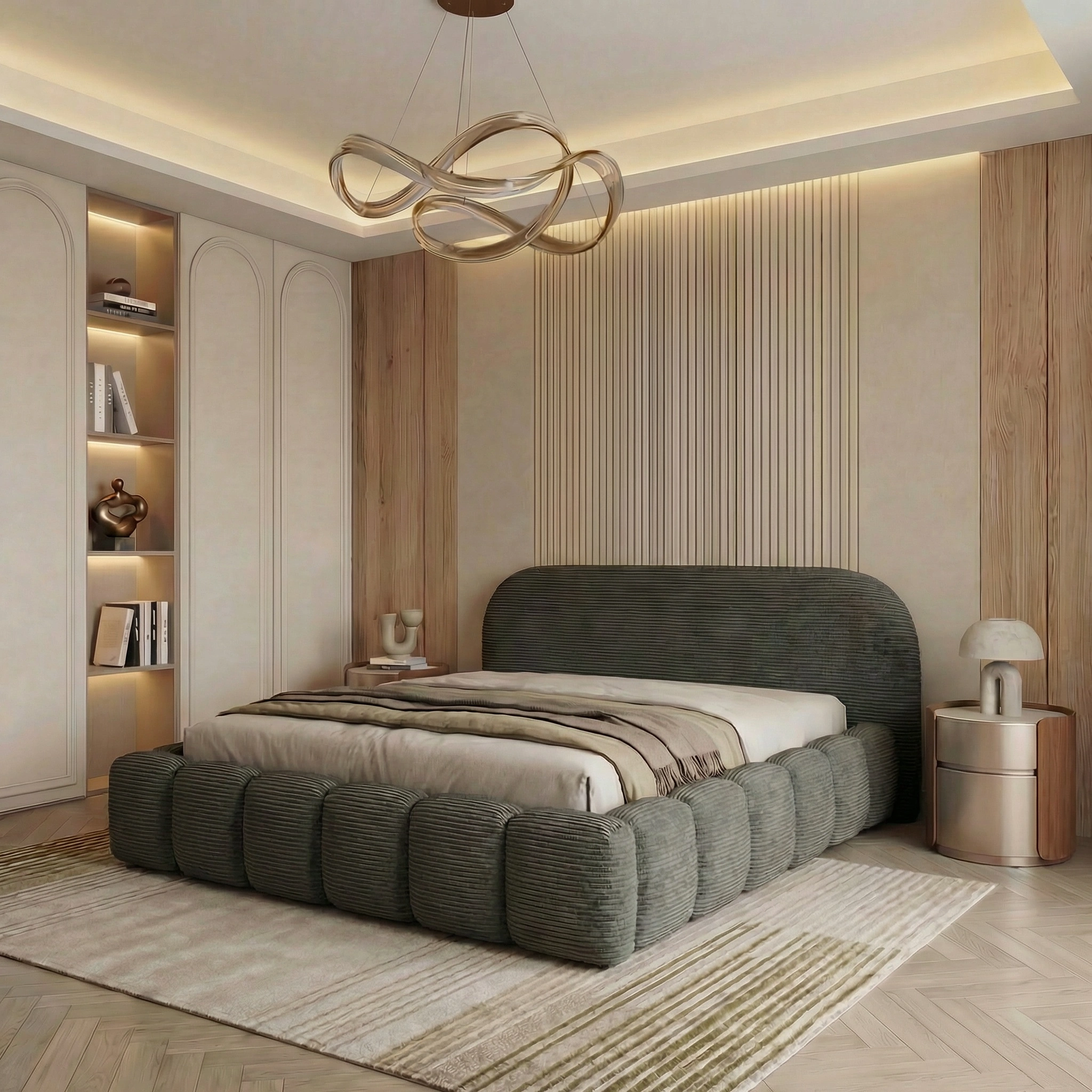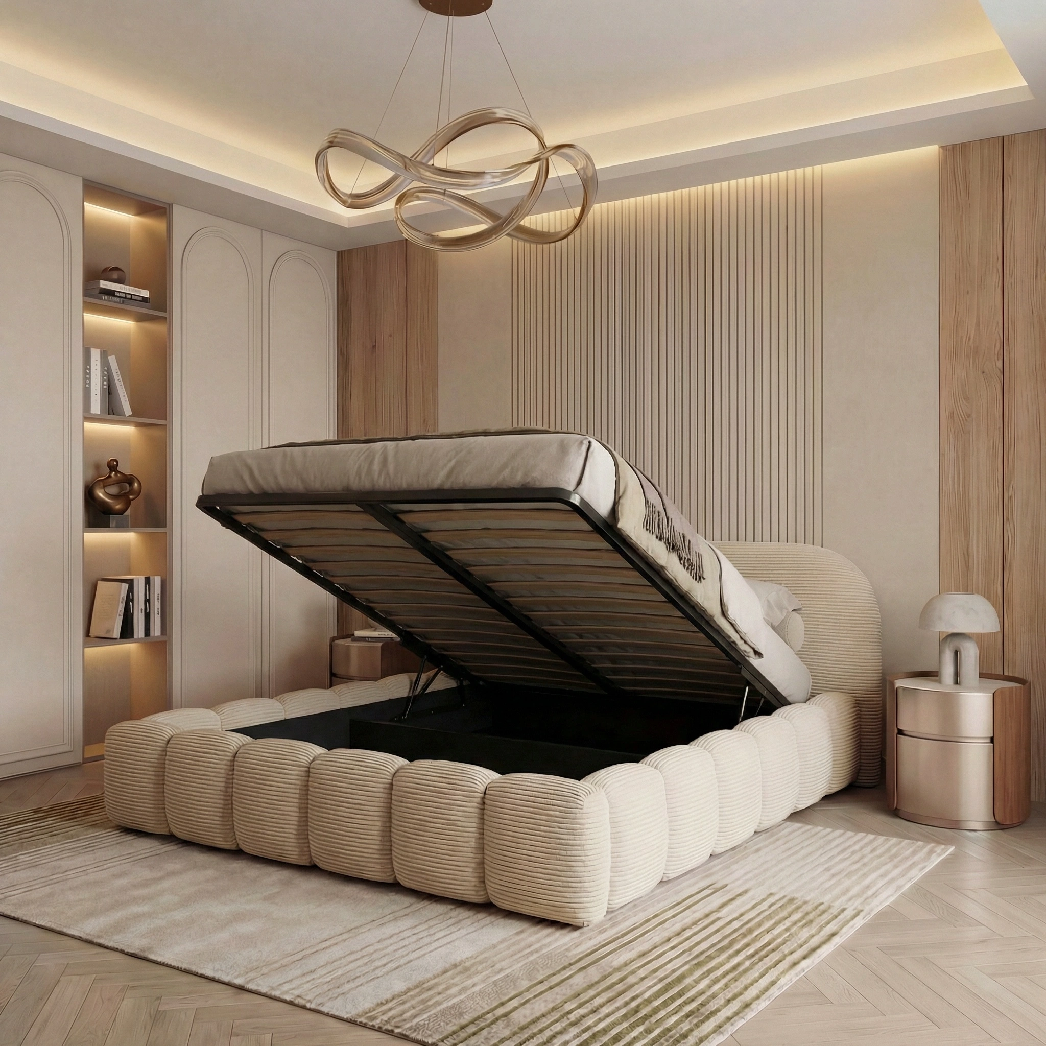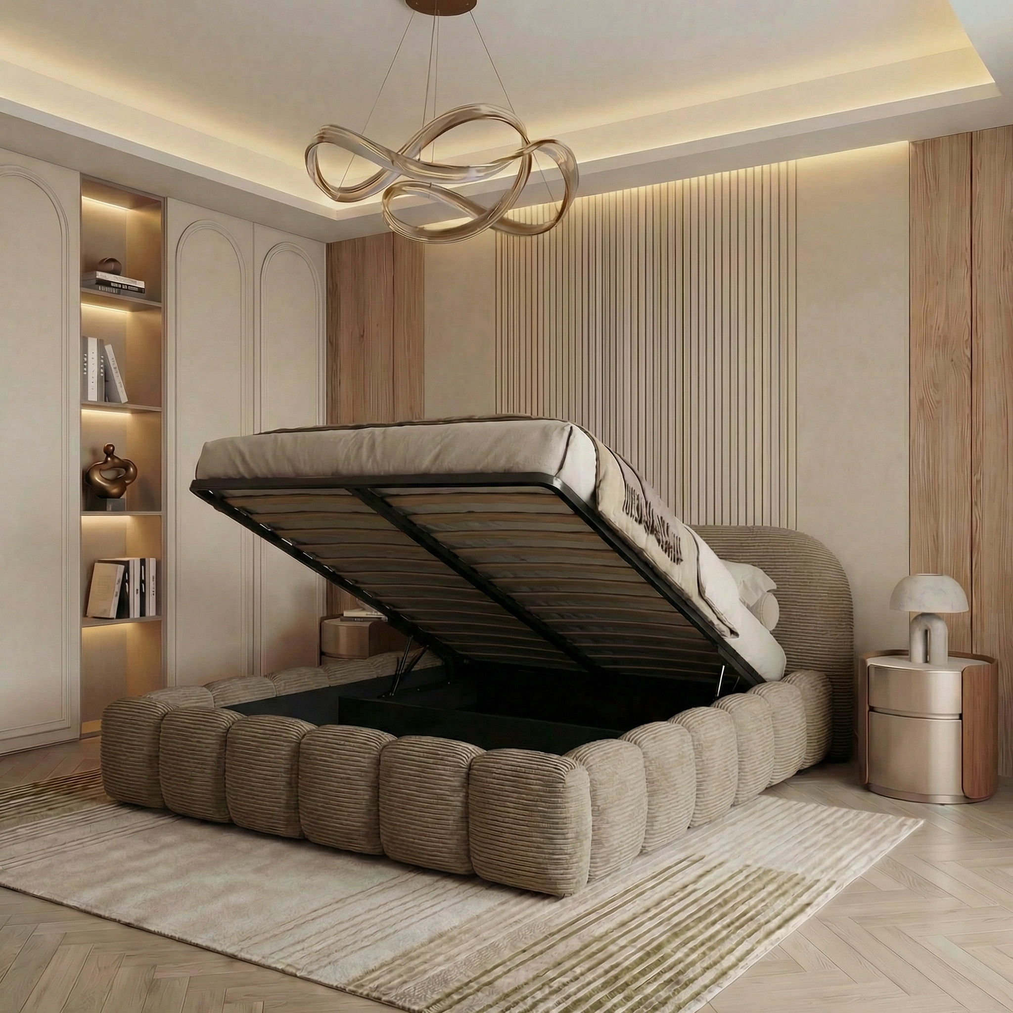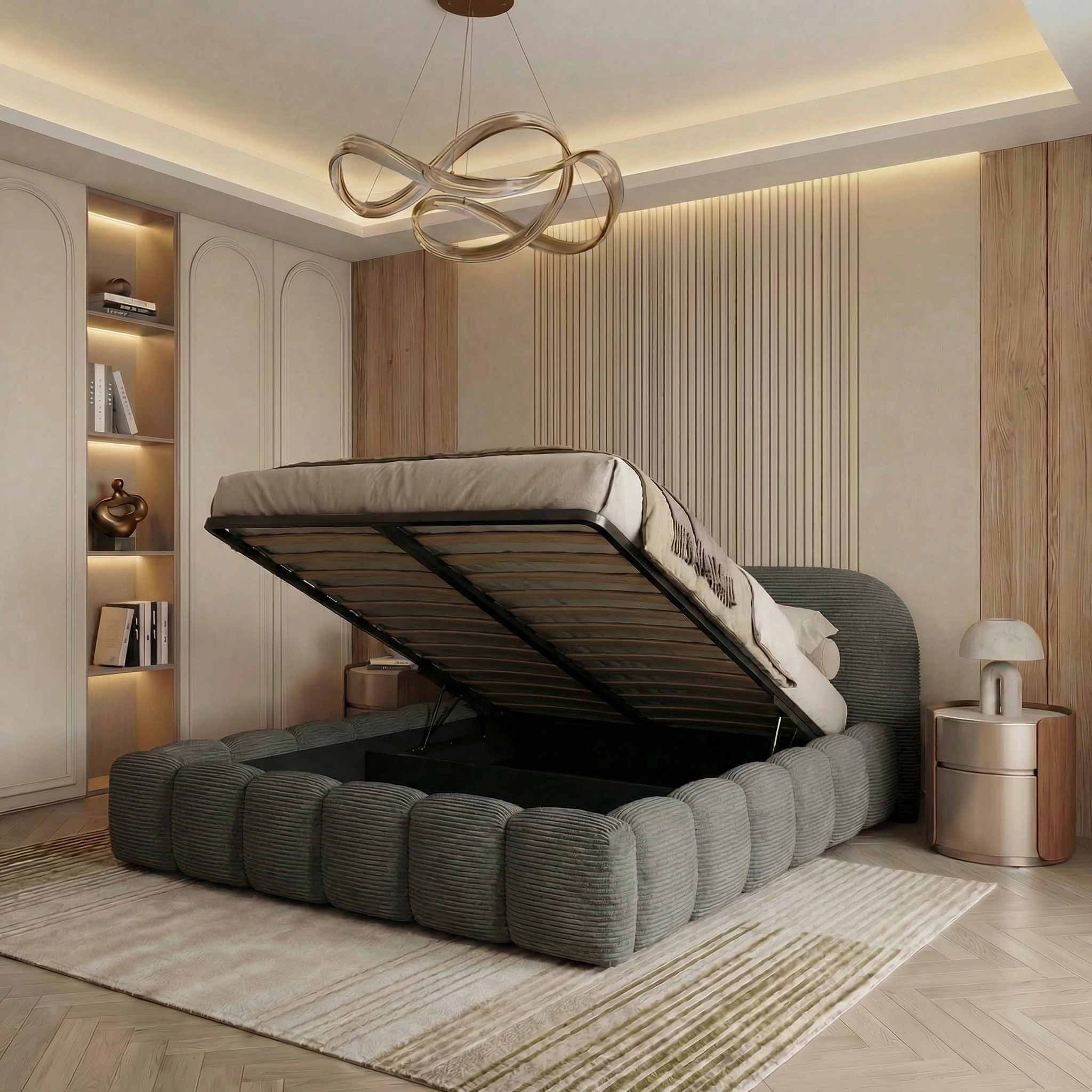 Polsterbett ORLANDO SLIM 200x200 cm Cord POSO mit Bettkasten