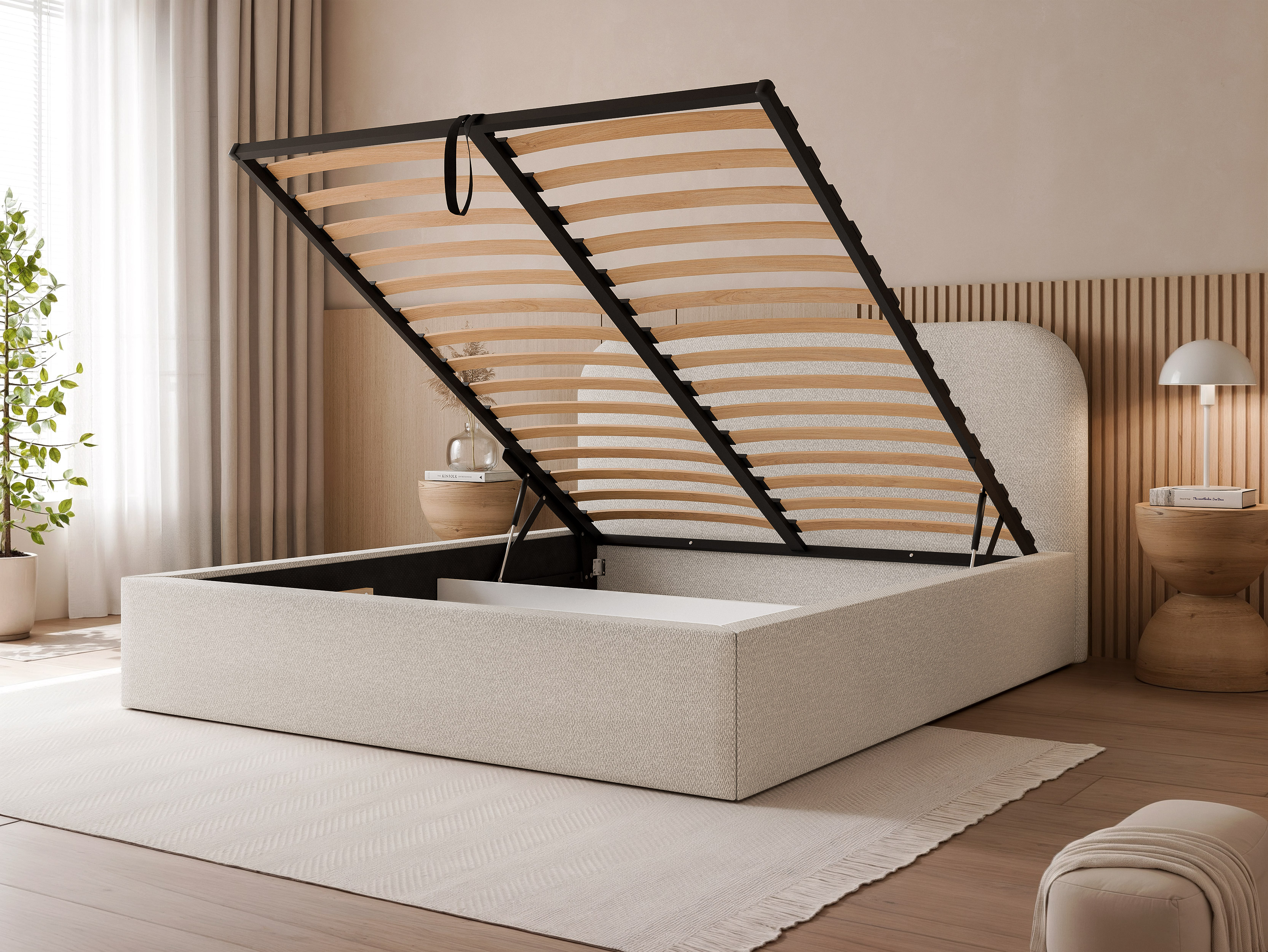 Premium Polsterbett LIVIA 140x200 cm Curved-Design mit Bettkasten