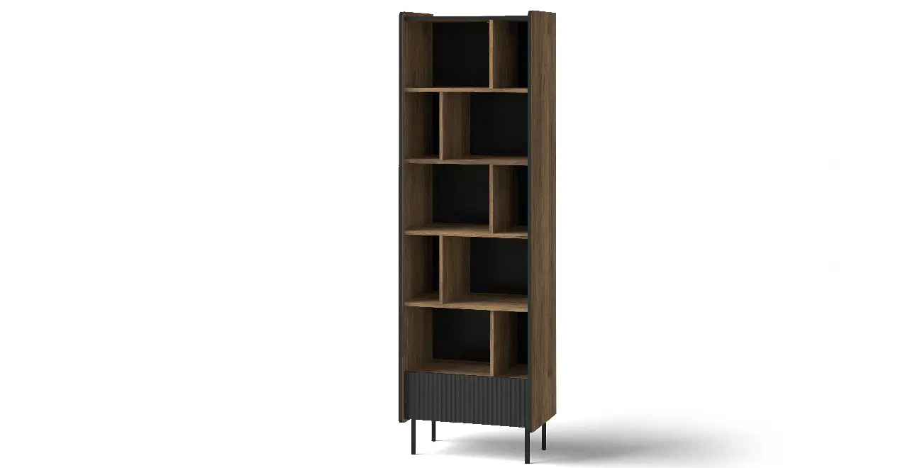 Regal NERO P10 | mit Lamellen | Nussbaum Warmia & Schwarz | Loft industrial