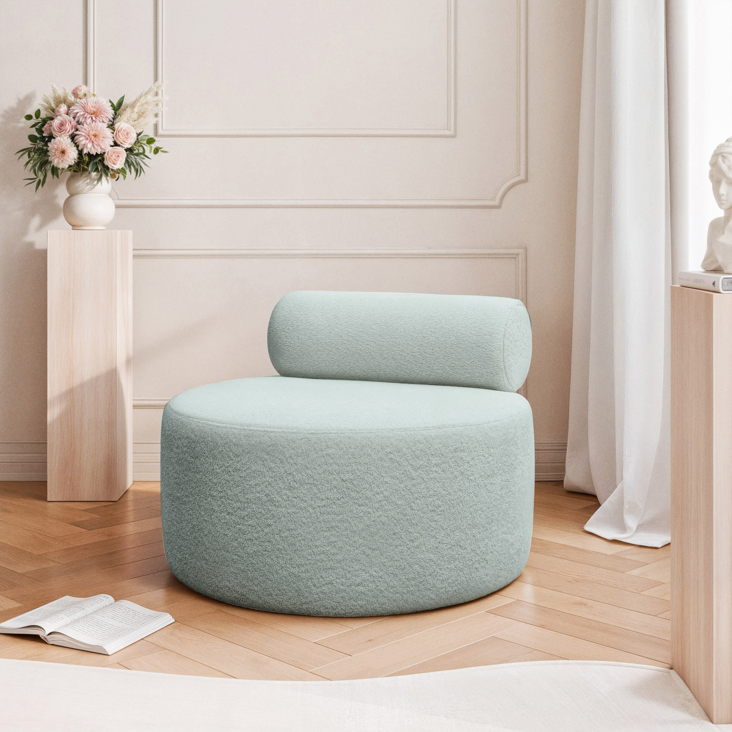 Runder Bouclé Sessel NUBO (Ø 90 cm) – Minimalistischer Lounge-Sessel im Teddy-Look